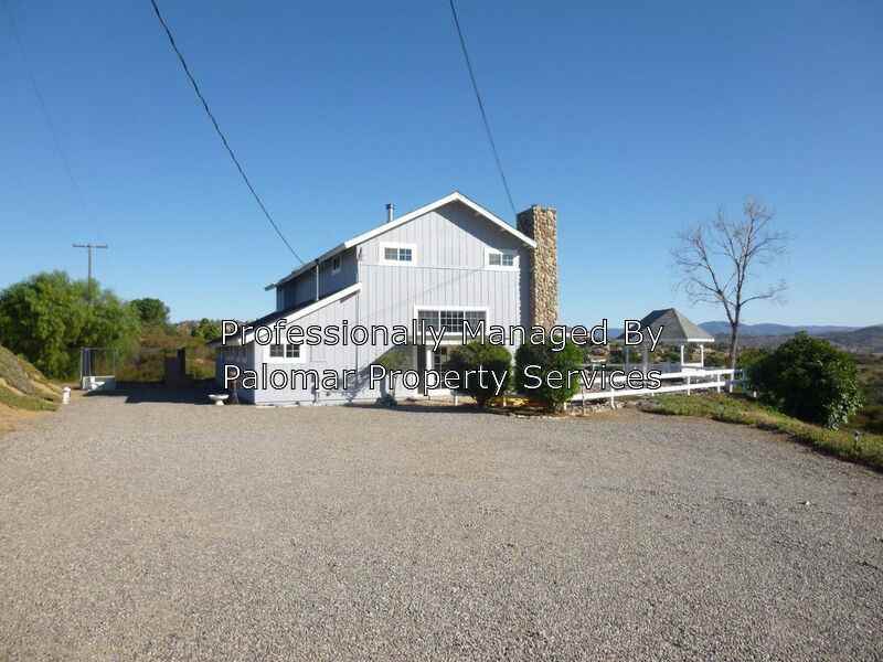 *MOVE-IN SPECIAL: Sign the lease today, pay just 1/2 of your first full month's rent!! Inviting 2 story, 5 bedroom home w/ optional 6th bedroom or office. All new carpet, bathroom flooring, fixtures and interior/exterior paint! Stretch out in the spacious great room with wood burning stove, vaulted, rustic wood ceilings and terra cotta tiled flooring. Enormous dining room accommodates large furniture and family! Huge master suite w/ additional room suitable for office, nursery or generous dressing room/closet. A/C, ceiling fans, and cool breezes in summer. Spectacular sun sets, nature and year-round views. Room for RV/truck/additional vehicles. Your pet, large or small, will be considered, w/ additional deposit and the completion of petscreening.com, available through our application process. Enclosed dog run on property. Plenty of room for horses, but no horse facilities available. Tenant pays all utilities. Owner provides landscaping. Tenant liability insurance required. Contact John Boruff, CalDRE #01857648, 619-733-4230. Thinking about buying a home? Let Palomar Property Services help you get pre-qualified! Amenities: Air Conditioning, Covered Patio, Horse Property, Landscaper Included, Laundry Room, Microwave, Office, Pets Allowed, Refrigerator, RV Parking, Views, Wood Burning Stove, Washer/Dryer Hookups in Unit