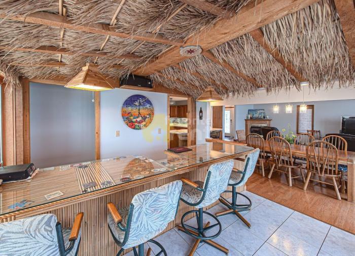 Beautiful, elegant home with spacious open great room with huge 60\" TV and home entertainment system is now available for long term lease with utilities included. Full kitchen with corian countertops. Unique sun room attached to tiki bar with sink and dart board. Home has massive deck with dock over water. There is room for multiple boats to dock. Master suite NEWLY REMODELED with king size bed, bathroom, tiled shower, jacuzzi tub that overlooks water, and private balcony. Bedroom 2 with queen bed. Bedroom 3 has 2 queen beds with private balcony. Bedroom 4 queen bed. Garage is included in rental. -- LID 45002762