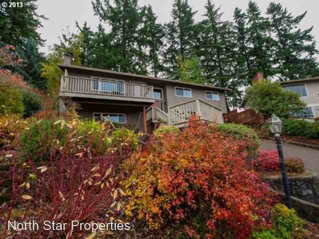 Tranquil Territorial views in Lake Oswego - Soak in the sunset and expansive territorial views from this peaceful hilltop home. This retreat is located at the top of a tranquil cul-de-sac on the edge of Aspen Park and in close proximity to Luscher Farm Park, tennis courts, the Lake Oswego Municipal Golf Course and surrounding trails. 6 month lease preferred. Enter the light infused vaulted landing with windows surrounding the front door. Go up a few steps and the entry opens to a great room concept with wood floors and an expansive kitchen perfectly suited for the gourmet enthusiast. This fabulous entertaining kitchen provides ease of flow around the enormous island and breakfast bar, featuring granite and travertine tiles and a gas range. Relax in front of the stone gas fireplace or enjoy the deck off the living room. The hallway leads you to a full bath with a shower /soaking tub combination and two bedrooms, both with custom wood closet built-in shelving. Optimally positioned down the hall for maximum privacy is the master bedroom en suite. The lower level provides a cozy family room with a wood stove and slate tile surround. There is an generous laundry room, fourth bedroom or office as well as another full bath. The double garage supplies ample storage with built in cabinets for all of your bits and bobs. No pets and no smoking please. Hallinan Elementary, Lakeridge Junior High, Lakeridge High School. No Pets Allowed