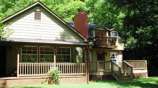 You will think you are in the English countryside in this charming Cottage with the ivy covered banks, rose bushes, various perennials, stone paths and picket fenced yard. Inviting 2 sided wrap deck and new large deck for outdoor enjoyment plus 2 storage buildings, new hardi plank siding plus cedar shakes, 2 yr. old roof. Inside, the kitchen has new cabinets, stainless appliances and granite counter tops and spacious island. Large living room with wood stove and nice hearth. Large laundry room, master bath w/chest vanity/sink, 2 bedrooms upstairs w/balcony. This is a very unique home in a beautiful setting Take Barkers Creek (staying left) for 1.2 miles, Make a Left on to Rockdale Lane (at the Brick Church). Follow 0.5 Miles turn Right onto Lazy Lane. At crest of the hill, Slight Left onto Bedrock Road. At fork in the road, go Right and up on paved drive to end. House is on the Right.
