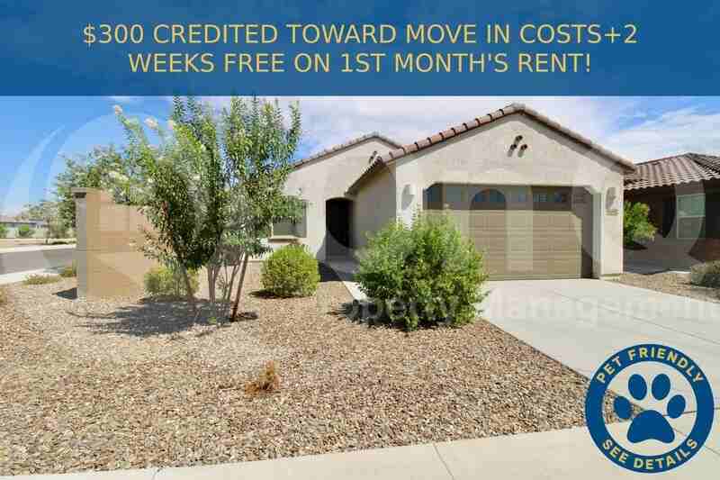 ** $300 CREDITED TOWARD MOVE IN COSTS+2 WEEKS FREE ON 1ST MONTH'S RENT! ** ** $300 CREDITED TOWARD MOVE IN COSTS+2 WEEKS FREE ON 1ST MONTH'S RENT! ** 1,400 SQ FT! 3 bedroom, 2 bath house with a charming one-story floor plan in Waddell. Home opens to a large living/dining room, great for entertaining! Kitchen boasts ample cabinetry, marble countertops, a breakfast bar, and stainless steel appliances! Ceiling fans and blinds throughout. Lovely 3 bedroom house coming with tile and carpet flooring in all the right places. Master bedroom offers an en-suite bathroom with dual sinks and a walk-in closet. 2 car garage! Laundry room with washer and dryer hookups. Convenient Waddell location, close to shopping, schools, and restaurants. Pet Policy: Dogs Allowed with the following exceptions: Dogs allowed NO CATS. $150 Non-Refundable Pet Fee per pet. A $35 Pet Rent per month per pet will be added to the rental amount (when applicable). (Service Animals - Please refer to the Resident Qualification link below) 3D Virtual Tour: https my matterport com show ?m=TfFBuH2hakq This home is managed by On Q Property Management. To apply online, schedule a self-tour, and view our resident qualifications - Go to OnQRentals com Please use the On Q Rentals website or click the following link to submit your application: https onq findigs com apply unitid=7f7cec9f-92d7-4cdf-8f90-b65b504a8f1e Review the Resident Qualification Requirements and Fee Structure: www onqpm com tenant-qualification-markets Find out how you can lower your upfront move-in costs with our Security Deposit Alternative program: www depositalternative com