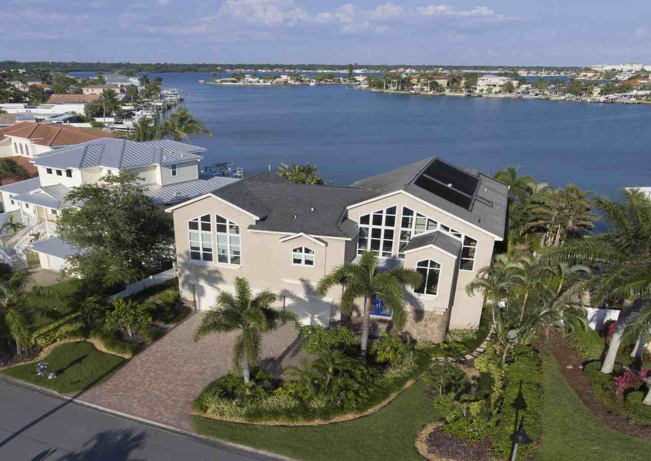 A TRUE RARITY! THIS LARGE, LUXURIOUS WATERFRONT HOME IS AVAILABLE FOR LONG-TERM LEASE. OVERLOOKING BEAUTIFUL WIDE WATER, THIS EXHILLARING NEO-CONTEMPORARY ARCHITECTURAL MASTERPIECE DELIVERS A DRAMATIC & SINGULARLY INSPIRING LIVING EXPERIENCE! Past lush landscaping & a towering stone facade entry, you'll be awed by soaring 35ft-high ceilings & a massive living area w/big, bold water views & wonderful natural lighting. Marble, porcelain & Brazilian Redwood flooring integrate w/seamless clarity. Fabulous chef’s kitchen boasts dazzling granite counters and superb free-form bar area w/matching ceiling that casts rich, subtle coastal overtones. 2 luxurious master suites offer fine closets, superb waterviews and lavish full baths with porcelain/granite/marble/wood finishes. Handsome gas fireplace, exceptional office with luxurious mahogany built-ins and outstanding oval built-in entertainment center. Upper level feels like a trip thru a Modern Art Museum – with ceiling, wall and window contours offering brilliant, complementary shapes and towering geometric forms that will leave you speechless. Upper-level bedrooms/living areas are tied together by an amazing 960+ sqft wrap around deck – all overlooking the water. Out back, discover a resplendent private oasis with Pebbletec pool/spa, posh built-in gas cooking center and multi-function deep water dock with 24,000 lb and 7,000 lb boat lifts, paddleboard/kayak storage and electric drydock launch. Solar panels, tankless hot water, 4 zone AC, electronic window shades and so much more! Just a 3-minute walk to the beach.