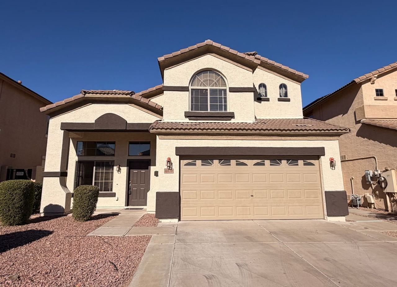Welcome to this large 4-bedroom, 2.5-bathroom home in a quiet neighborhood. With a spacious open-concept floor plan, this home offers a bright and airy atmosphere perfect for both everyday living and entertaining. The large kitchen offers plenty of cabinet space with black appliances, pantry and an island with a breakfast bar. A dedicated laundry room with washer/dryer and half bath completes the first floor. As you walk up to the second floor, you will find a loft area for flexible space. The primary suite is your private escape featuring a generous walk-in closet and an ensuite bathroom with dual sinks, separate toilet room and a separate shower and soaking tub. Three additional bedrooms all with closets provide flexible space for guests, a home office, or hobbies and share a guest bath. Step outside to your private backyard with a covered patio, and desert landscaping. The large two-car garage and extra driveway space accommodate both vehicles and toys with ease. Minutes to RT 303, Sam's Club, shopping and restaurants. Home is friendly to a max of 2 spayed/neutered pets with $350 per pet fee. We do not list on OR FACEBOOK MARKETPLACE SO IF YOU SEE IT ON THERE IT IS A SCAM $50.00 non-refundable application fee per person, age 18 or over. Full security deposit of $1,895 due upon approval. Move in date must be between 7 & 30 days from lease signing/payment of security deposit. If moving in on or after the 5th then pro-rated current month rent is due as well as the following full month. All rent is due 7 days prior to move in.