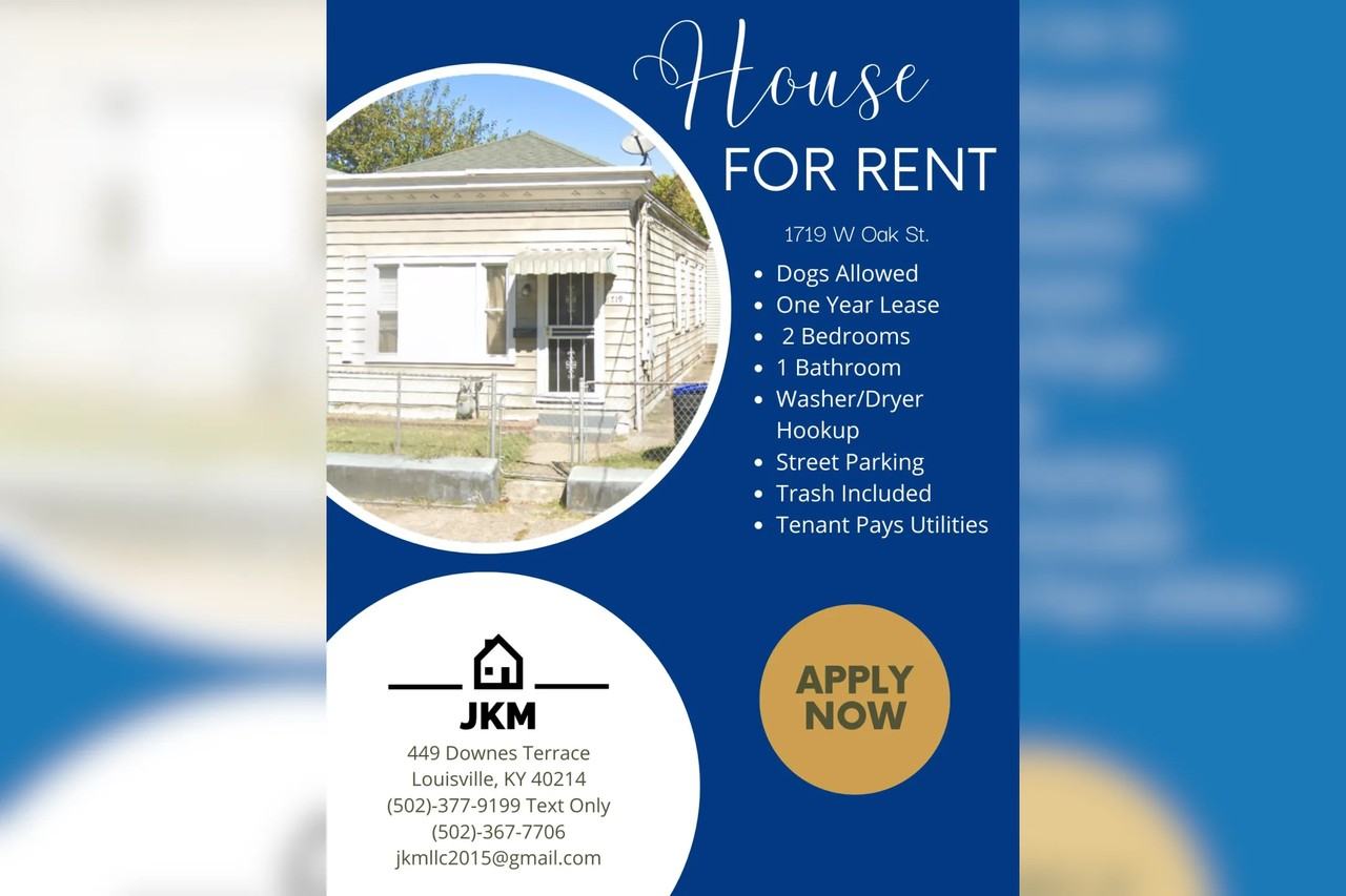 2-bedroom apartments at 1719 W Oak St cost about 23% less than the average rent price for 2-bedroom apartments in Louisville.