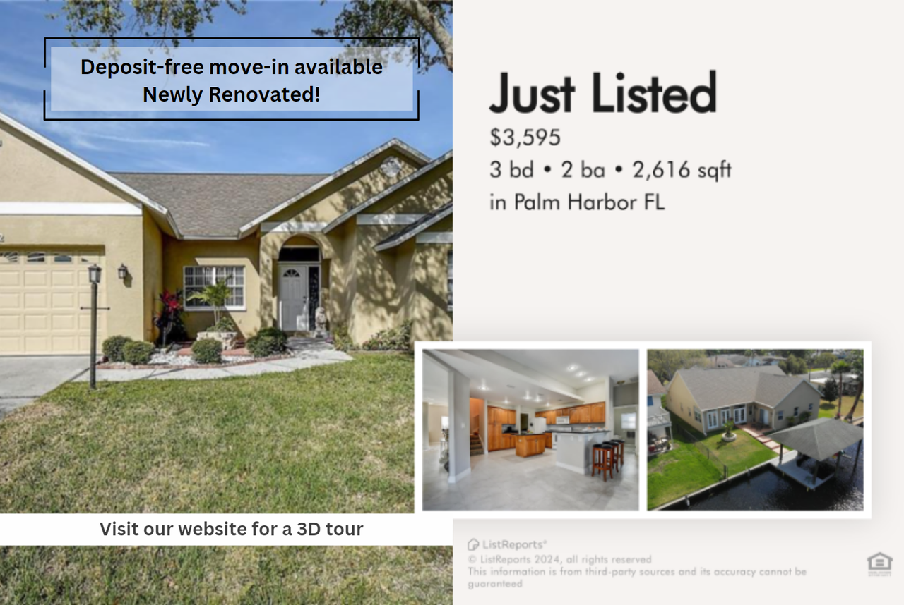 ** New listing with 10 Stars Property Management ** For any questions regarding the property or the rental process please call or text (727) 666-5388 Beautiful 3 beds 2 baths is available for rent in Palm Harbor, FL. 172 Lake Shore Drive West in Palm Harbor is located near key local attractions and amenities. It's close to Lake Tarpon, offering excellent boating, fishing, and water recreation opportunities. John Chesnut Sr. Park is nearby, providing nature trails, picnic areas, and a dog park. The area also offers easy access to major roads like US-19, connecting you to downtown Palm Harbor and nearby beaches such as Honeymoon Island State Park and Clearwater Beach. With a variety of local shops, dining options, and outdoor activities, this location combines natural beauty with modern conveniences. Features: - One-story home with a loft offering additional space for versatile use - Porcelain tile throughout for a modern, easy-to-maintain look - Large kitchen with granite counters, center island, and breakfast bar perfect for cooking and gathering - Basic kitchen appliances included to make meal prep easy - Dishwasher included for quick and convenient clean-up - Master suite with walk-in closets for ample storage and en suite bath for added privacy - Ceiling fans to keep you cool and comfortable year-round - Laundry room with washer and dryer for hassle-free laundry days - Car garage for secure parking and extra storage - Located on a freshwater canal with direct access to Lake Tarpon, ideal for boating enthusiasts - Covered dock with a boat slip and davits ready for your watercraft - Tenant is responsible for paying all utilities Pets are allowed. No more than 2 pets per property. Weight limit of 55lbs per pet. No aggressive breeds. Applicants must complete a free pet application and have animal approved with vaccination record. The monthly pet fee will be determined by your pet screening score. Does not apply to medically/emotional support prescribed and/or