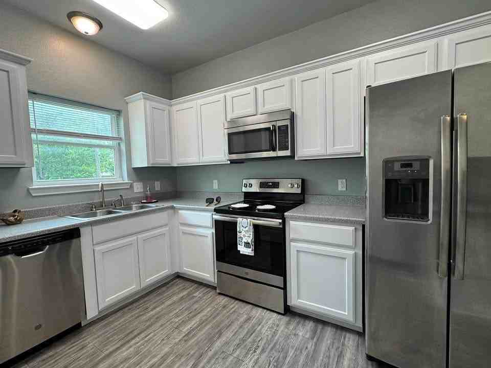 This spacious and uniquely designed duplex features 3 Master Bedrooms, each with it's own private bathroom and walk in closet. The contemporary architecture makes it a stylish home that residents will be eager to share with their friends and relatives. Conveniently located approximately 2 miles to the University. This property includes a wooden privacy fence for added seclusion and pet security. Lawn mowing and weed maintenance will be provided for your convenience. The home is equipped with modern appliances and includes a separate laundry room with hookups and space for full size washer and dryer. Please note that cats are not allowed, and dogs must be less than 25 lbs. Non-refundable pet fees will be applied. Inquiries are directed to the property manager; keep in mind that text or calls are encouraged for quickest response time. Applications will be provided by request. Anyone in the household that is 18 years of age or older will be required to submit a written application.