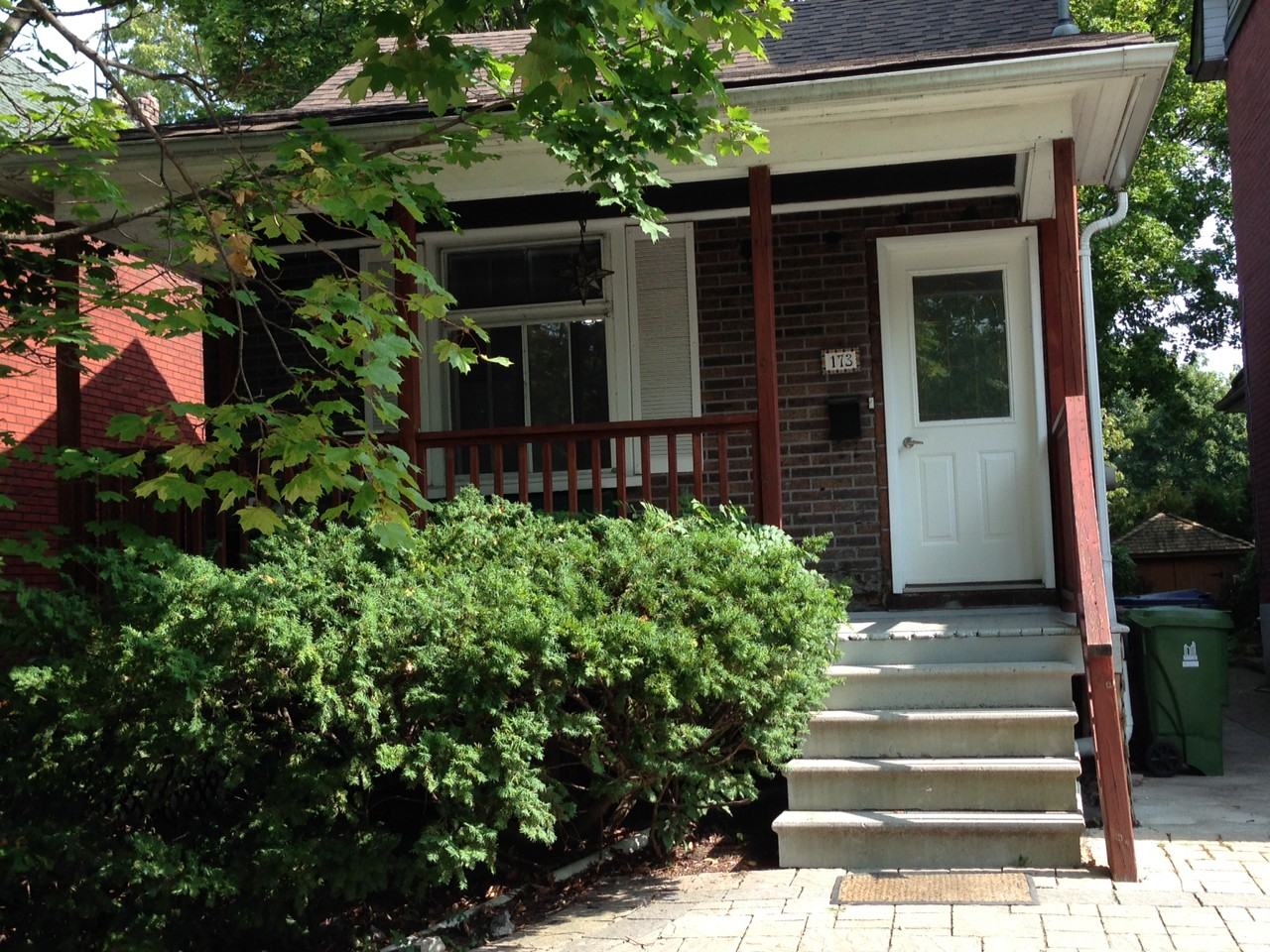 Main floor in a bungalow - available immediately 2 bedrooms, den, eat-in kitchen, bathroom (approx. 85 sq m or 915 sq ft). Front porch; walk out to large backyard, BBQ. Skylights in living room and kitchen. Hardwood floors. Freshly painted, some upgrades. Washer and dryer, parking for 1 car, other on the street. Prime location in quiet, safe, established neighbourhood with mature trees, parks, cafes and shopping immediately at hand. ** Walk to Subway, 15 min. drive to downtown or 5 min. to the 401 and 30-min. to the airport. Gas and hydro are the responsibility of the tenant, water included. No smoking, no pets. Storage available in part of the basement. ** more photos coming or will email ** see also http://m.viewit.ca/details.aspx?vit=44235