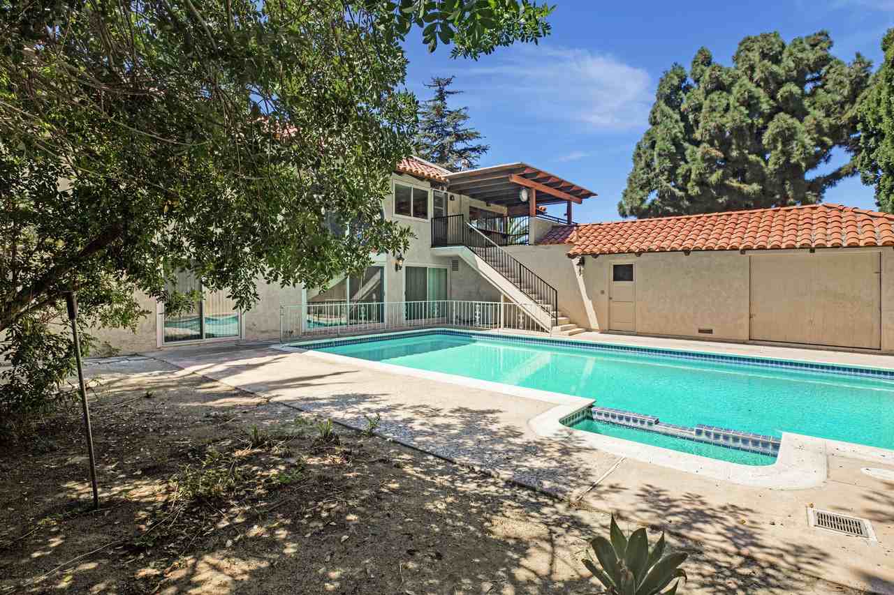 This approximately 3698 sq ft palatial home, a combination of Spanish Revival features and Romanesque landscaping is reminiscent of the glory days of Hollywood grandeur. Attractive, wide steps lead into a walkway that proceeds to the double wooden door entrance. Once inside, a wide and roomy foyer provides access to a panorama of rooms including 5 bedrooms, plus a study and 3 1/2 baths, each with a combination of practical and esthetically pleasing features. Built to impress, this beauty maintains many of the original upscale features like custom built-in's, an abode-style fireplace as well as a more modern conventional one, rounded archways, an elegant curved stairway leading to the second floor, and walk-in closets that can also be used as dressing rooms. The primary closet is even equipped with cedar panels. A full service kitchen complete with in set stove top and storage galore awaits food preparation for small soirees or gala gatherings. Several raised platform areas provide both interest and ambience as well as create a separate space without walls or dividers. In addition to spacious rooms inside are generous outside covered walkways, and a gorgeous pool and hard scape patio This backyard area is conveniently accessed via the first floor sliding doors and by the outdoor stairway that villa-like, leads from the second story. A sweeping driveway ushers vehicular traffic to a huge enclosed three car garage in the back of the property. La Loma is primarily a residential neighborhood that reflects the care and attention residents put in their properties. Plenty of business and parks are nearby as are small businesses that provide a myriad of goods and services. Definitely a neighborhood feel within proximity to the city and its amenities.