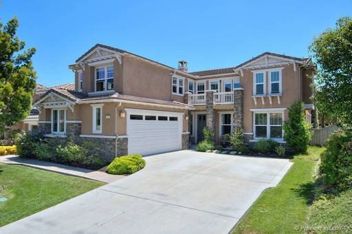 This beautiful executive home is located on a cul-de-sac street in the gated community, Saverne of San Elijo Hills. This home boasts hardwood flooring downstairs with upgraded carpeting upstairs. The kitchen has granite counter tops, a double oven, cook top, microwave, refrigerator, and dishwasher. The living room is just off of the kitchen and has cathedral ceilings with ample sunlight from the many windows. There is a full bedroom and bathroom downstairs along with an extra living room for this room. The laundry room is located downstairs just behind the kitchen. There is also a formal living room and dining room downstairs. The remaining four bedrooms and office space are all located upstairs. There is a balcony off one of the bedrooms. The master suite is over sized and private. The backyard is very private and is equipped with professionally installed turf for the water wise. There is also a home garden with fresh produce. Come see this gorgeous home today!
