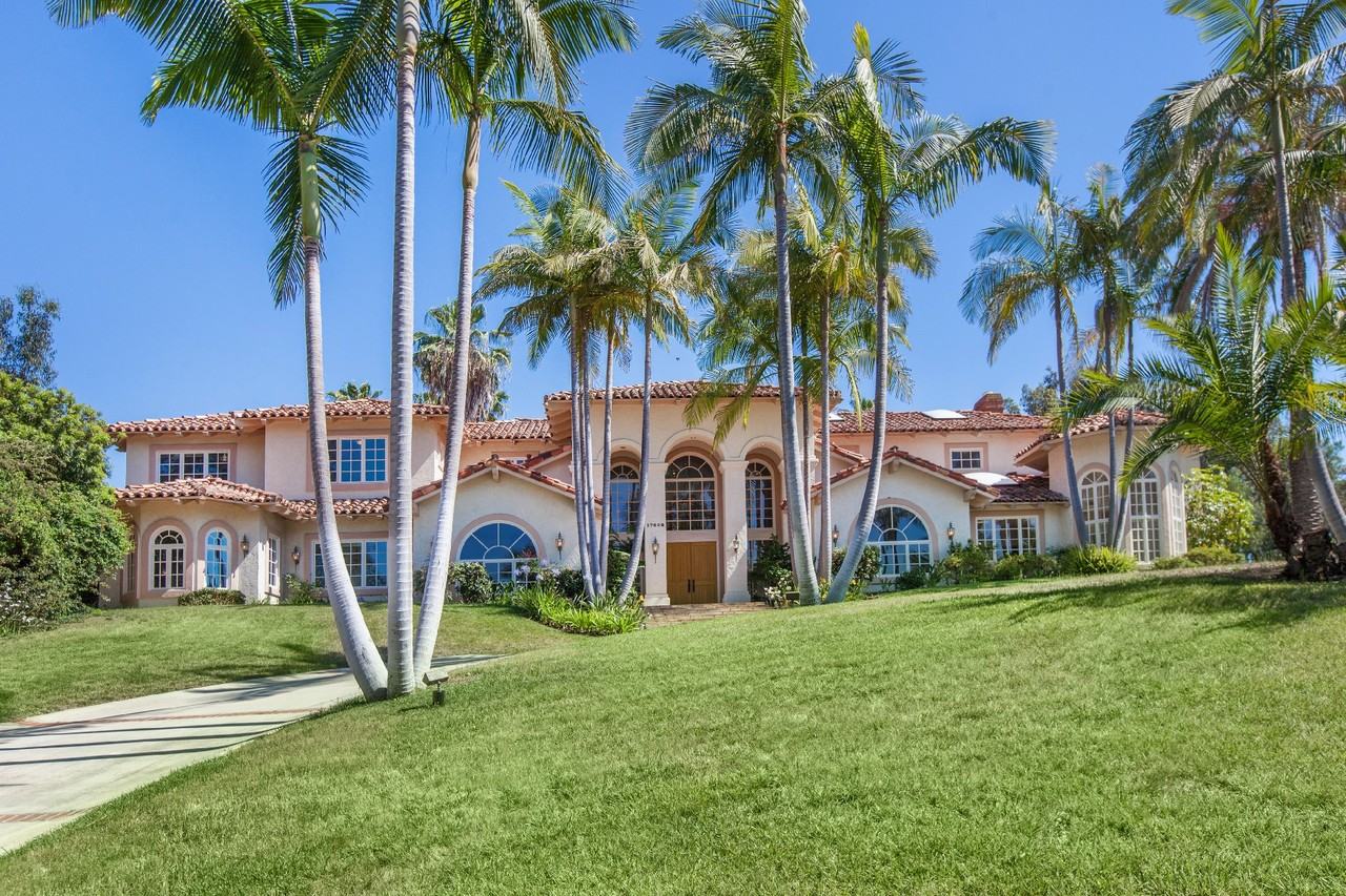This stunning estate home is located on the coveted north side of guard-gated Fairbanks Ranch, a short stroll from the clubhouse, private lake and tennis courts! Architectural features include a dramatic curving staircase, myriad of arched windows, soaring ceilings and numerous skylights that bathe the interior in natural light! The formal living and dining rooms are perfect for entertaining on a grand scale while the kitchen, breakfast nook and generous family room with wet bar make up the heart of the home. The gorgeous in-home theater with 105” screen, ceiling-mounted projector and built-in speakers for surround sound offers another perfect place to gather with family or friends. The freshly remodeled kitchen boasts brand new wide-plank hardwood floors, limestone counter tops, glass back splash and high-end stainless steel appliances, including a Bosch oven, microwave and dishwasher and SubZero refrigerator. The sellers used an adjacent room -- already plumbed with gas and vented to the outside -- as a second kitchen for messy cooking jobs. An inviting office, a spacious guest suite, exercise room, guest powder room and a maid’s bedroom and bath complete the main level. Upstairs is an expansive master suite with fireplace, large his and her closets and a sauna. Opposite the master are two secondary bedroom suites which share a bonus area perfect as a study or play room. With over 8300 square feet of gracious living space, desirable Southern exposure and reportedly perfect Feng Shui, this property is a gem!