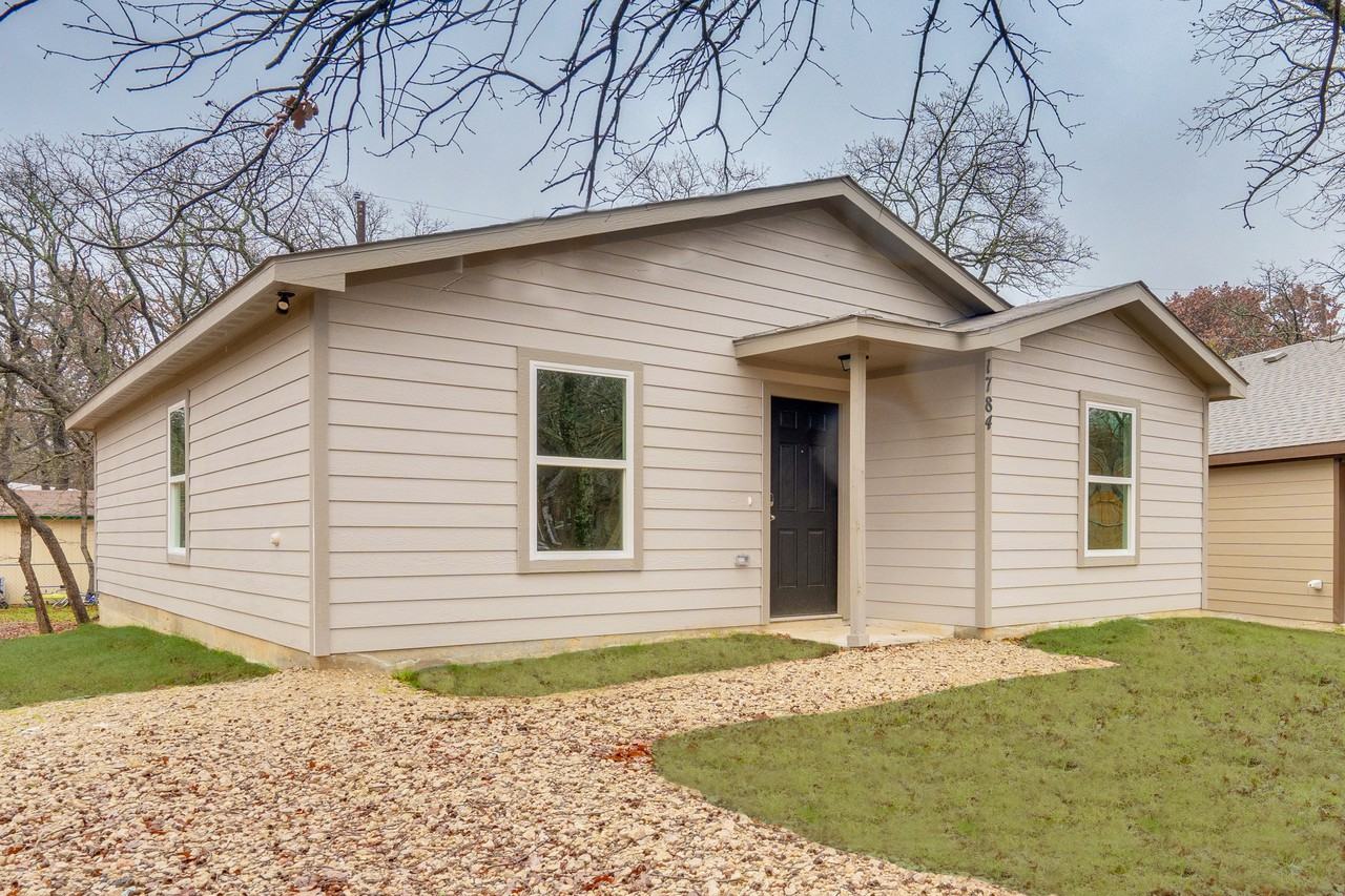 3 bedrooms, 2 baths, lovely elevation with siding, two motion exterior flood lights, 6'8" front entry door with keyless smart lock, low E insulated glass windows with screens, weather stripping on all exterior doors, smooth two square 6'8" interior doors, 3 1/4" baseboard moulding, 30" flat panel kitchen cabinets, 50/50 stainless steel kitchen sink, granite countertops in kitchen, Honeywell Programmable Z-Wave Thermostat, Brushed nickel lighting fixtures, 50 gallon electric water heater, marble countertops in all baths, vinyl flooring in entry, kitchen, master bath, secondary baths, and utility room (wet areas), carpet flooring in family room and all bedrooms, black electric range
