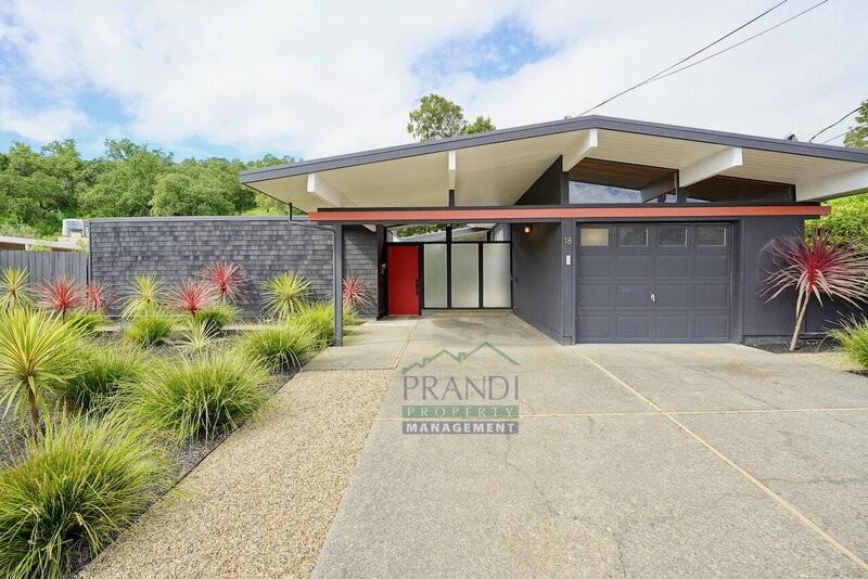 Nestled in the hills of San Rafael, this 4-bedroom, 2-bath residence offers an elevated take on mid-century modern living. Natural light pours through vaulted ceilings and walls of glass, creating an effortless connection between indoor and outdoor spaces. Thoughtfully updated with contemporary, high-end finishes, the home delivers a clean, sophisticated aesthetic throughout. Sleek gray tile flooring is complemented by a striking, artisan-crafted ceramic accent wall, adding depth and visual interest to the modern interior. The bespoke kitchen has been carefully designed to unify custom cabinetry, premium appliances, and expansive counter space, creating an inviting, design-forward setting that anchors the home’s living experience. An interior atrium introduces natural light and organic elements, enriching the home’s architecture with a spa-like ambiance and a quiet sense of retreat. The main living areas - including the living room, kitchen, and primary suite - are equipped with air conditioning for year-round comfort, while the three additional bedrooms feature efficient electric heating. Surrounded by beautifully maintained landscaping, the property enjoys a lush, natural forest backdrop that enhances privacy and creates a peaceful setting. Additional conveniences include in-unit washer and dryer hookups for your own appliances. Renter’s insurance is required. Well-behaved pets may be considered with owner approval and an increased security deposit. To schedule a private tour, please contact Austin by call or text at (415) 578-4105 or email ****. .