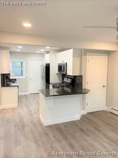 Wakefield 2 bedroom / 1 bathroom apartment in a three-family. Eat in Kitchen with the following amenities: microwave, dishwasher, refrigerator, and Natural Gas Stove. Laundry is free in basement. 2 off street parking spots are included. Cats and dogs are allowed. (Reference #176108)