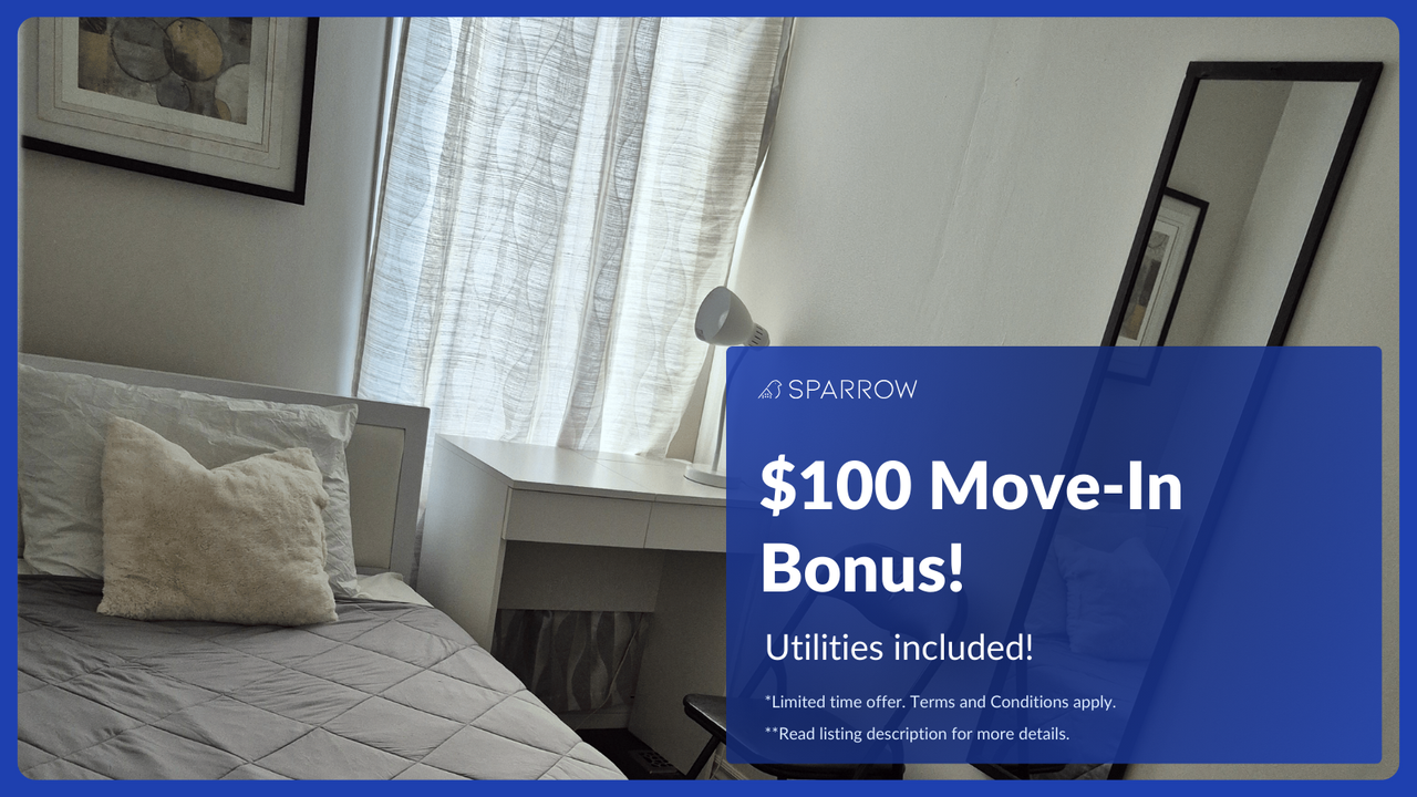 Text me at 437 291 7980 for assistance using SparrowShare Online App Request a tour for this private room for rent at sparrowshare. com Private room for rent in a shared house at Ranee Avenue (FOR FEMALE) Bedroom available: 1 Furnished Bedroom B: $930 Private room with Single sized bed (Shared bathroom) Solo female occupant only Utilities included: - Air Conditioning - Internet - Heating - Cable TV Shared spaces: - Bathroom - Kitchen - Living Room - Dining Room - Backyard Parking: None Minimum Rent Duration: 4 months Payment: Security deposit after signing the agreement, then pay the 1st month's rent before move in-date Address: Ranee Ave, North York, ON M6A 1M6, Canada *For home safety precautions, Exact Address will be shared once a viewing is arranged House Rules: - No Guests - No Pets Allowed Additional Benefits: - Credit Building - Tenant Insurance Included Disclaimer: This listing has been syndicated from sparrowshare.com, including its content, rental terms, and images. Sparrow is used to verify the identity and compatibility of those interested. The advertised property is owned and/or managed by Melvin from Sparrow Living Inc.