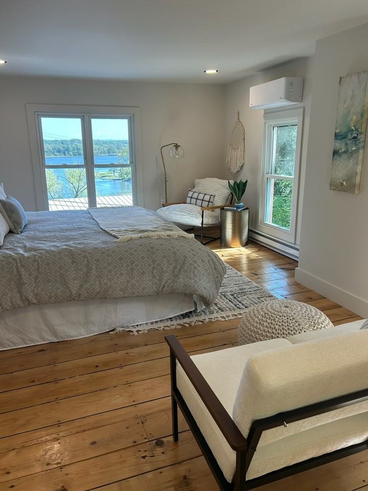 Stairway to heaven! This newly-renovated historic hilltop cottage in Coxsackie is exquisitely furnished and features Hudson river views from each floor. A peaceful oasis with split duct central ac and heat. Sip coffee and watch the sun rise over the Hudson in a rocking chair on the porch. Ground floor has a gourmet kitchen, dining room, living room, a half bath and full laundry with a rear door to the garden and patio. The second floor has two bedrooms, each with an en suite bathroom and Hudson River views. Ideal live/work or shared housing because each suite on the second floor has its own wing. Walking distance (2 min) to the center of the Village of Coxsackie that has a general store, liquor store, Shipwrecked Cafe & Books, Che Figata Italian restaurant, Patrick Henry's pub and the lively social scene at Ravish Liquors.