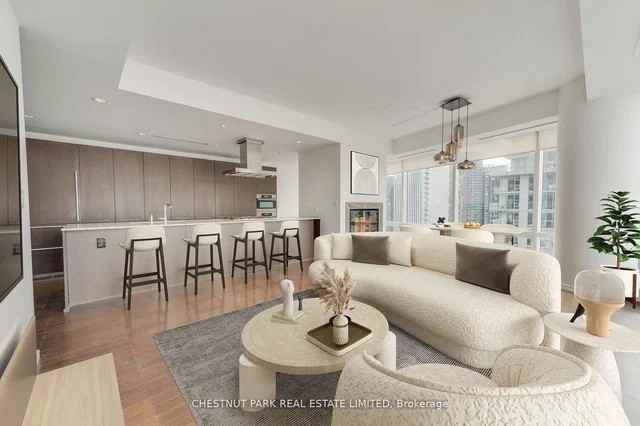 Luxurious living at the Shangri-La Private Residence. This 2+1Bedroom, 3 Bathroom suite offers A 5-star lifestyle above the Shangri-La Hotel at this coveted address. This sophisticated NW facing corner unit is surrounded by floor-to-ceiling windows and is filled with natural light. Take in the beautiful city views directly up University Ave to Queens Park. The gourmet kitchen and open-concept layout make this suite perfect for entertaining. The kitchen is also equipped with top-of-the-line appliances including a new Miele gas stove. The primary bedroom is complete with a 5 piece ensuite and walk-in closet. The second bedroom has a three-piece bathroom and closet. Off of the main living space the den is equipped with sliding doors making it a great home office space. Perfect for those seeking access to unparalleled luxurious living at the Shangri-La. Call Angelina at: 647-923-5558 for more infos./ Book your private viewing!