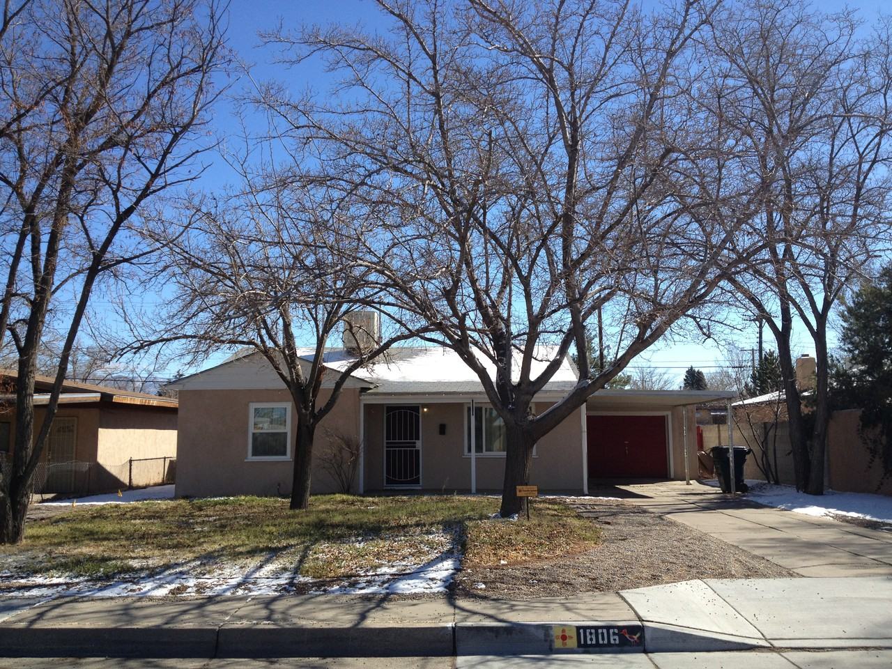 Two bedroom charmer in excellent Mid-Town / UNM Location. Quality finishes and fixtures throughout. Newer flooring in every room. Full European style kitchen upgrade with plenty of cabinet and counter space. Pragmatic floor plan features a formal dining area, large living room, smart laundry / utility space, split bedrooms, and an updated bathroom. Other upgrades include thermal windows, new insulation, and stylish window treatments. Attached garage comes with bonus carport space and room for extra storage. Huge private backyard combines lush grass, a relaxing patio, and beautiful native landscaping. Located with easy access to UNM, Nob Hill, Uptown, I-25, I-40, and fantastic shopping and dining.