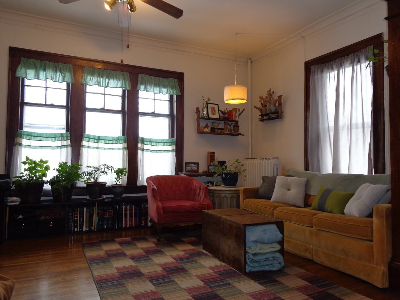 Second floor apartment with a great view of Steven's Park, beautiful trees right out the front windows. Large separate dinning and living room space with corner windows. Two closets, one large walk-in with shelving and hanging storage. Bedroom accommodates a queen-size bed. Hardwood floors throughout, claw-foot bath tub, FREE radiator heat and laundry on-site for 1.00 washer/dryer. Trash and water included. Off street parking and large storage units available for low monthly fee. Office building for Steven's Community Apartments less than a block away. Good neighborhood feel with quite and clean building. Short walk to downtown MPLS bus lines. Great sunny apartment, lived here for three years and will miss it! Contact Steven's Community Apartments for currant rental rate and to set-up a viewing! 612.870.8010