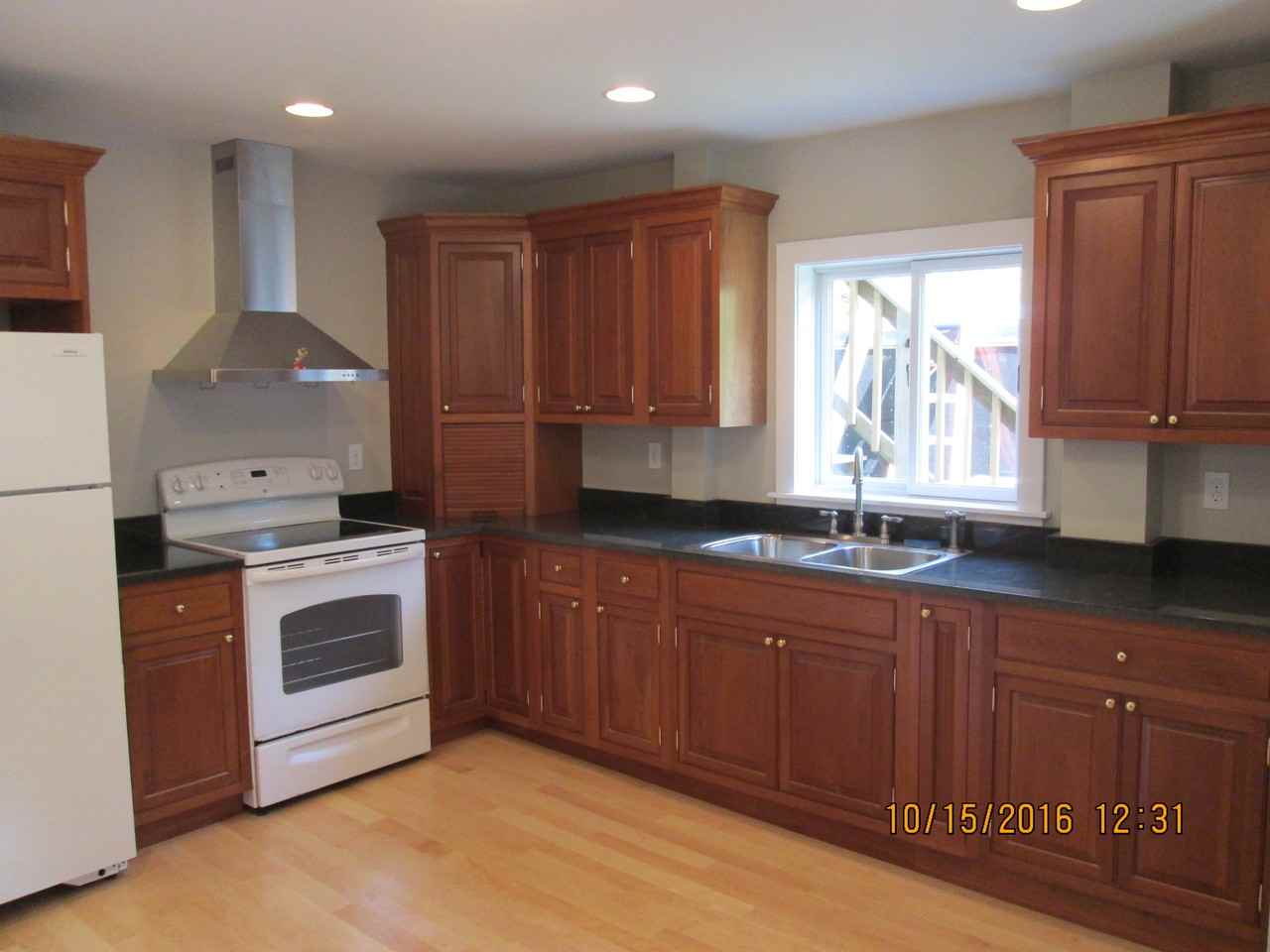 Spacious (750 sq. ft.) apartment –total renovation just completed. New kitchen, bath, floors. Cherry cabs, granite tops, maple hardwood floors. First floor, walk to town, W/D, Utilities not included No pets, no smoking