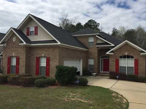 Beautiful 4 or 3 bedroom brick home in popular Bradshire with a garage. Upstairs bonus room/ game room or downstairs separate living room would make this a 4 bedroom home. Hardwood floor in foyer and great room areas. Nice sized kitchen with breakfast area features pretty granite counter tops. Kitchen has plenty of dark wood cabinets and all matching black appliances. Huge master bedroom downstairs with trey ceilings and a good sized walk-in closet. Master bath with a claw tub and oversized stand up shower. 16x16 raised deck overlooks the large, level privacy-fenced rear lot. ***No Pets Allowed at this property. Call Reeves for more information (251) 661-4925