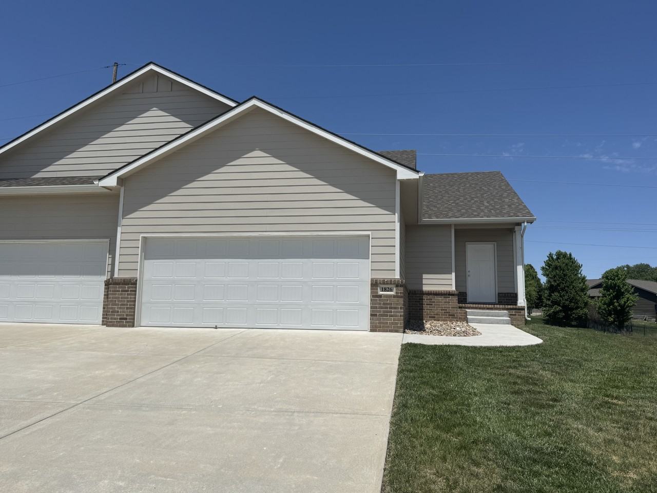 Beautiful 4BR 3 bath duplex with attached 2 car garage. Neutral wall color, all white woodwork. 2 BRs on main floor, 2 more in view out basement. Semi-enclosed deck off dining area on main floor.