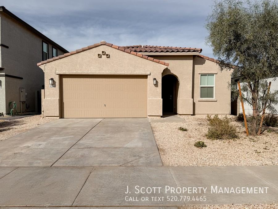 Welcome to this beautifully upgraded 4-bedroom, 2-bath home located in the highly sought-after North Copper Canyon community of Surprise. Offering 1,789 square feet of thoughtfully designed living space with desirable north/south exposure, this home features an open and airy layout highlighted by high ceilings and elegant 8-foot interior doors throughout. The kitchen is a true centerpiece with granite countertops, a large island, breakfast bar, dark wood cabinetry, stainless steel appliances, subway tile backsplash, and a spacious walk-in pantry—perfect for both everyday living and entertaining. Wood-finish ceramic plank tile flows through the main living areas, while the bedrooms are comfortably carpeted. Upgraded lighting and the stylish Staccato interior finish add a modern touch throughout the home. The primary suite offers a relaxing retreat with a walk-in closet and a dual-sink vanity in the master bath. A large laundry room with washer and dryer included provides added convenience. Step outside to enjoy the extended covered back patio and fully fenced backyard with low-maintenance desert landscaping—ideal for relaxing evenings or weekend gatherings. The home also includes a two-car garage for secure parking and extra storage. Residents of North Copper Canyon enjoy access to incredible community amenities, including a resort-style pool, tennis courts, pickleball courts, bocce courts, basketball court, dog park, recreation areas, and scenic walking trails. Conveniently located near major Surprise employers, Luke Air Force Base, healthcare facilities, shopping centers, dining, and entertainment, this home offers both comfort and lifestyle. Professionally managed by J. Scott Property Management, this property is perfect for those seeking quality living with proactive care and service. ANIMALS Dogs: Yes Cats: Yes Max Allowed: 3 Max Weight: 25 Lbs Pet Deposit: $300 per animal Pet Rent: $25 per animal / per month UTILITIES Electric: APS Gas: NA Water/Sewer: Liberty Utilities Trash: City of Surprise OTHER PROPERTY INFO Landscaping: Tenant Paid