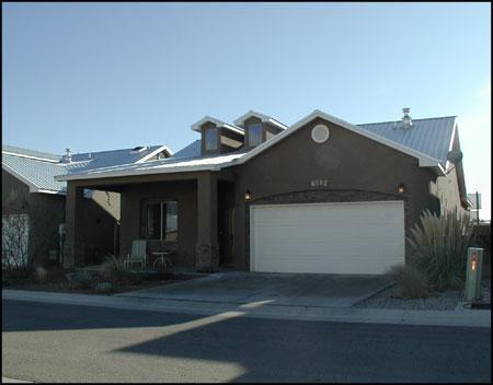 Open floor plan with fantastic light. Custom wood work, vigas, wood slat blinds, huge windows, and raised ceilings. Artistic tile work throughout compliments sizeable, well-designed kitchen and bathrooms. Radiant heat with central heating boost, refrigerated air, and energy efficient construction. Deluxe master suite has a huge walk-in closet, jacuzzi tub, custom, step-in shower with two shower heads, and private access to a covered patio. Private backyard is a mini oasis with bamboo and grass, an adobe wall, and native perennials. All landscape maintenance is included! Located in a private and quiet pocket community just a quick walk to great coffee, shopping, and beautiful river valley walking trails. Call Deacon Property Services at (505) 878-0100 for a showing.