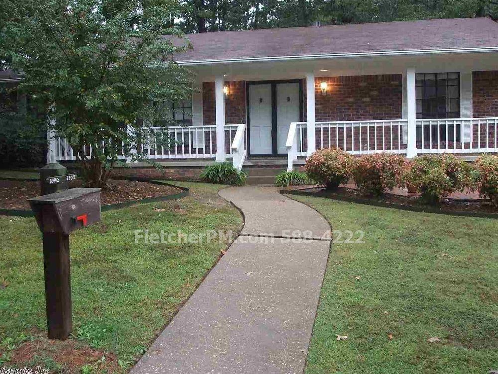 Located at 18402 Fawn Tree Drive is a charming 3br/2ba house for rent in the LR subdivision of Otter Creek with approximately 2001sqft. The kitchen is furnished with electric range, dishwasher, and disposal. You provide the fridge. There is a living room and dining room combo with built in display cabinets. Room could be used as home office. Washer and dryer connections are conveniently located in a separate oversize utility room. Storage space in garage Also included are CH/A, foyer, ceiling fans, gas fireplace, window shades, carpet/ceramic/vinyl flooring, breakfast nook, ice maker hookups, walk-in closet in master bedroom, covered deck, patio, fenced yard on corner lot with double car garage. Convenient to area shopping, restaurants, I-30, & I-430. Animals may be allowed if requirements are met.
