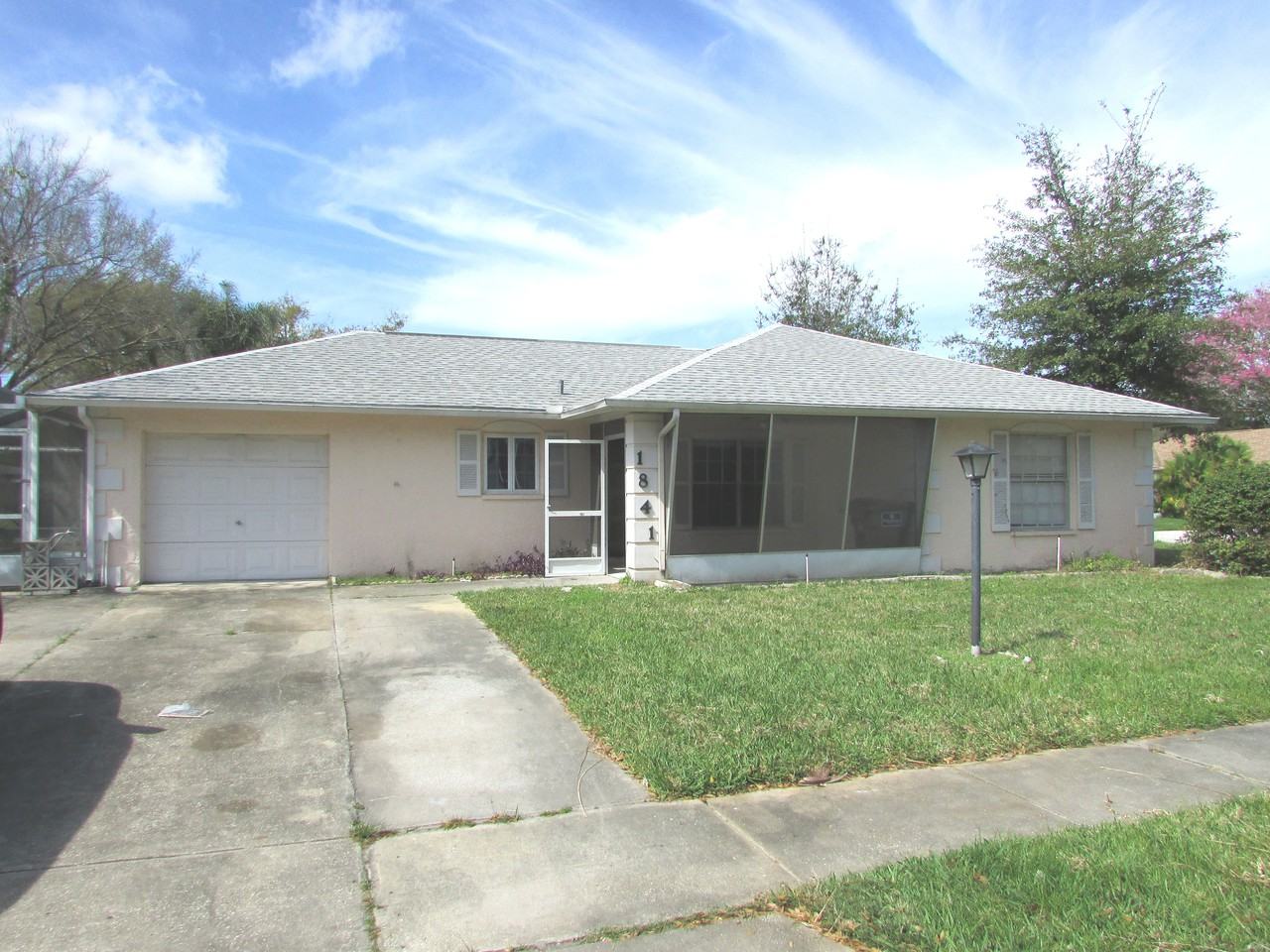 Corner lot pool home. Three bedroom, two bathroom home with 1 car garage. Pool is screened in. Tile flooring throughout main living areas. Great location close to I-75, restaurants, Wiregrass Mall, Tampa Premium Outlets and new hospitals.