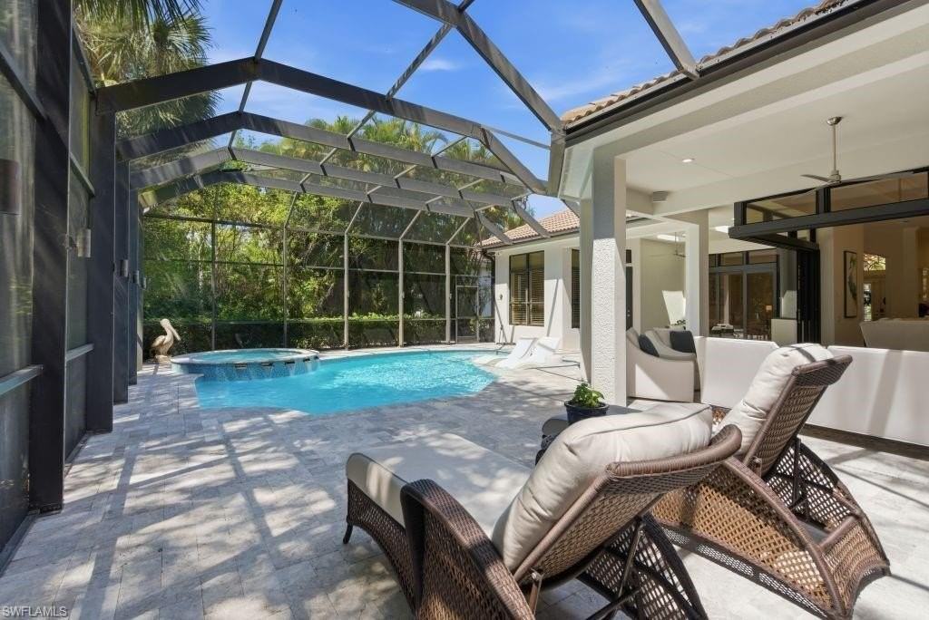 Property Status: Active ROOM FOR EVERYONE ... AND THEN SOME: Custom AR Homes Estate, Miromar Lakes, Fully Furnished, $10,000/Month June to October 2026, $16,000/Month November and December 2026. At Miromar Lakes, the experience alone feels like a five-star vacation ... and this home is where everyone actually sleeps comfortably. Four bedrooms each with their own private bath, plus a den that converts to a fifth sleeping space. A three-car garage and paver circular driveway with fountain welcomes you home. The custom-built home spans 3,100 sq. ft. with volume double tray ceilings, a sitting room, formal dining with kitchen pass-through, a great room that opens completely to the outdoor living spaces and a separate bar with wine fridge. The Monogram kitchen features gas cooking, a center island and a breakfast nook overlooking the pool. The master suite takes up the entire right wing with a private entry to the pool and spa. Plantation shutters, tile flooring throughout and wide-plank French oak LVT flooring in the bedrooms. Every detail is there. Out back, a screened lanai wraps around a heated saltwater pool and spa with a full outdoor kitchen, separate dining and lounge areas and complete privacy. June through December is a great time to be here. The community is alive and social without the season crowds. The chaise lounge you want is always open. Dinner doesn't need a reservation. Pets welcome. Owner pays utilities. Fully furnished and ready. Miromar Lakes features three miles of private white-sand beach along a 700-acre freshwater lake where you can waterski, wakeboard, fish, paddleboard, kayak, sail and enjoy sunset cruises. Amenities include three restaurants, a 10,000 sq. ft. zero-edge infinity pool with poolside food, drink and towel service, a European-inspired spa, a state-of-the-art fitness center, a library, movie theater, billiards, tennis, pickleball, bocce, marinas, a botanical park, concierge services and a vibrant year-round social scene. Conveniently located near Southwest Florida International Airport (RSW), Gulf beaches, shopping, dining and I-75. Office Phone: (239) 799-5300 Copyright © 2026 Naples Area Board of REALTORS. All rights reserved. All information provided by the listing agent/broker is deemed reliable but is not guaranteed and should be independently verified.