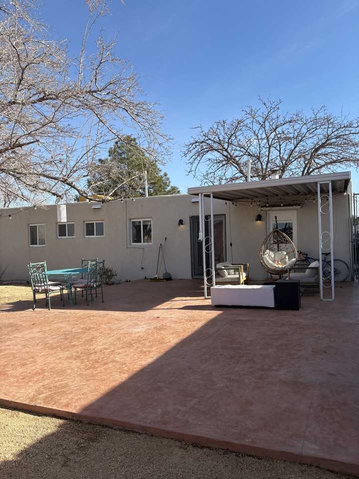 Property Id: 2421928 This FULLY FURNISHED, pet friendly, beautifully updated 2-bedroom + office, 1.5-bath home offers stylish comfort in the heart of Albuquerque Uptown. Enjoy a renovated interior with an upgraded kitchen, dedicated workspaces, and a relaxing backyard patio. Located just minutes from Trader Joe's, Target, Smith's, Coronado Mall, and Uptown shopping with quick access to I-40 this home combines convenience with a peaceful neighborhood setting. The owner does not live on-site, ensuring full privacy for renters. Amenities & Features: -Fully furnished home -small dogs and cats OK! well behaved larger dogs considered. -2 bedrooms + dedicated office with two workstations (one with monitor + HDMI) -Updated kitchen with gas stove, dishwasher, and ample storage -Front-loading washer & dryer -Clawfoot bathtub + rain shower -Large closets and additional storage throughout -Renovated backyard patio for relaxing or entertaining -Quiet, friendly neighborhood -Close to Trader Joe's, Target, Smith's, Coronado Mall, Uptown district -Easy access to I-40 -Owner does not live on-site Renter responsible for gas, electric, and internet to be paid to landlord via venmo (landlord will provide monthly statements from the utility companies). Pets allowed, but must be approved. No smoking. This is a furnished property, no changes should be made to the property.