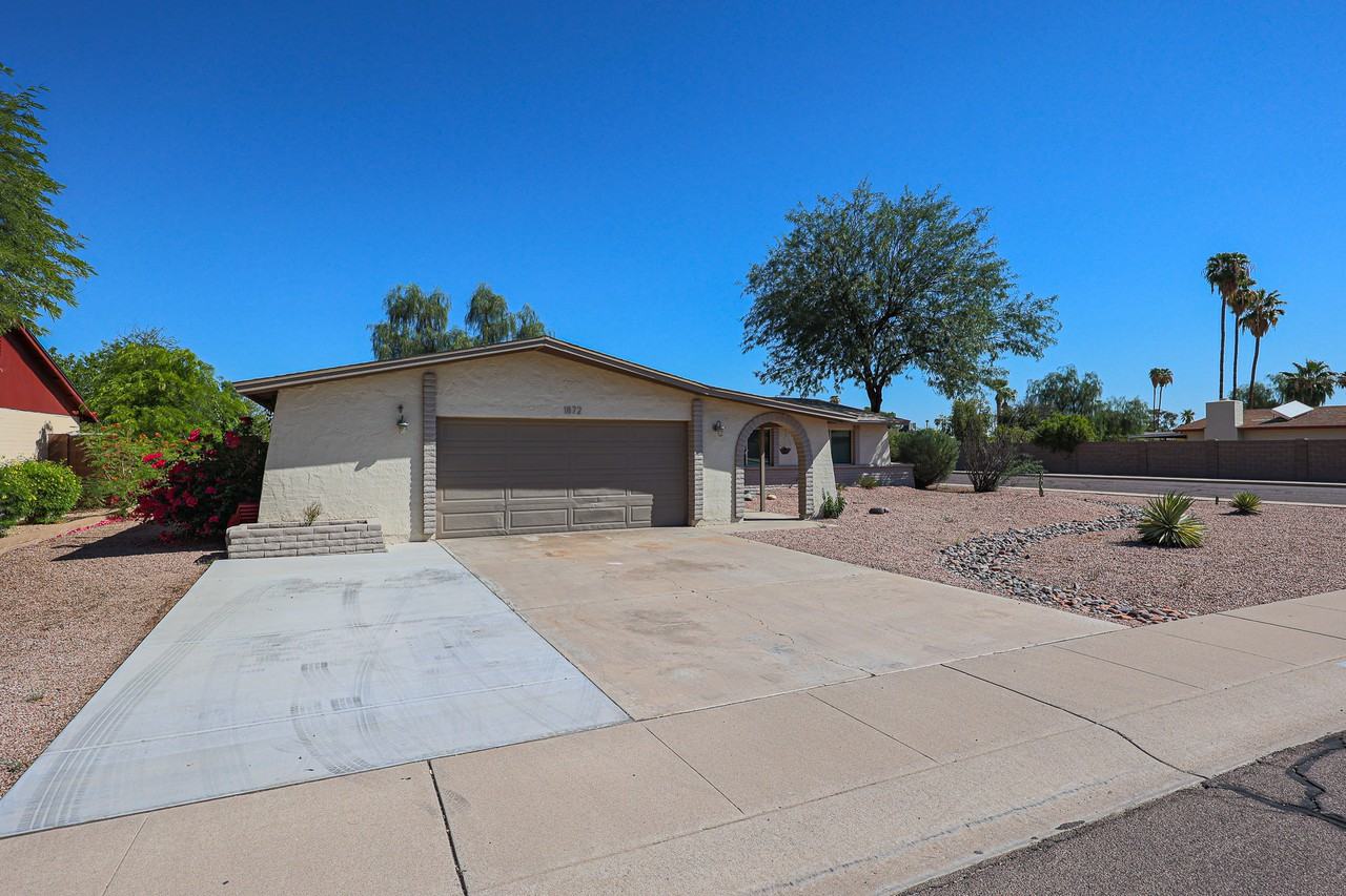 Tenant Occupied Until 7/15/24- Will be ready for a new tenant by 7/19/20024. Beat the heat with this beautiful renovated home w/Pool with a perfect address. This home was fully renovated from front to back with no expenses spared and has an open kitchen and family room floorplan. Features include all new wood tile throughout, charming brick wood fireplace, ceiling fans, modern paint. Dual pane windows and sliding glass doors. RV space on the side of the home with no HOA restrictions, a third card concrete slab added for ample parking. Garage with floor to ceiling storage cabinetry. It doesn't stop there! You have your very own backyard oasis with a large pool with bistro lights over it and low maintenance landscape professionally designed with turf and pavers with lots of great entertainment space, covered patio with travertine surrounding the pool. Then open your back gate with and you have direct access to a well lit walking trail great for your dogs that runs into two different parks! You will love the privacy of this premium corner lot with only one neighbor on the side. All of this is situated in the quiet and mature neighborhood of Optimist park with quick access to the 101 & 60 freeways and all of the great shopping, food and entertainment the north and south Tempe has to offer! Weekly Pool service included with rent. One Time Admin Fee: $300, Pet Deposit: $300/pet (if applicable), Municipal Tax 1.8% & Service Fee 2%. $39/month Resident Benefits Package, Helping Heroes Discount Available!