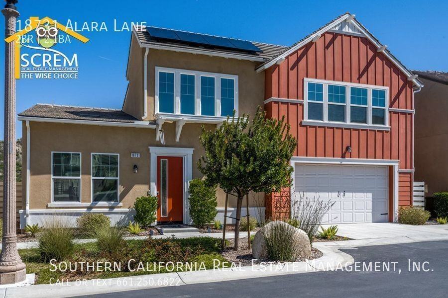 Stunning two-bedroom home with attached bathrooms, located in Verano, an exclusive gated community for active adults aged 55 and over. The first floor features beautiful wood-like laminate flooring throughout. The kitchen boasts bright white cabinets, gorgeous granite countertops, a large island, a walk-in pantry, and stainless-steel appliances, which include a gas stove, single oven, microwave, dishwasher, wine fridge, and a refrigerator. Adjacent to the kitchen, the formal dining room is well-sized for hosting and features a lovely butler's pass. The kitchen opens to the living room, which features a beautiful fireplace, built-in entertainment shelves, and oversized sliding glass doors that lead to a private backyard with a covered patio and mountain views. The downstairs master bedroom showcases a beautiful wood plank wall with pendant lighting, a walk-in closet, and an attached bathroom with dual sinks and a large walk-in shower. Additionally, there is a half bathroom and a laundry room with a washer and dryer located on the first floor. Upstairs, the second master bedroom features a walk-in closet and an ensuite bathroom with dual sinks, a walk-in shower, and a separate garden bathtub. This home includes an attached two-car garage with a Tesla charger and offers energy savings with solar panels. The Verano community features a fitness center, a resort-style pool, a spa, bocce ball courts, and outdoor BBQ areas. It is conveniently located near shopping, restaurants, and the 14 freeway. *The owner may consider a small pet. For inquiries about this property, please email ****. To schedule a viewing appointment, visit www screm com After viewing the property with our leasing agent, you may complete a rental application online at www screm com Every adult aged 18 and older must submit an application. If approved, an application fee of $60.00 is required for each applicant who is 18 years or older, and it must be paid along with the move-in funds. All showing appointments MUST be scheduled directly through www screm com No other website can schedule appointments for our properties. * Tenants will need to obtain Renters Insurance. Proof of insurance will be needed at lease signing. DO NOT DISTURB OCCUPANTS – PRIVATE PROPERTY - NO TRESPASSING. 55+ Active Senior Gated Community Hoa Pool And Spa Two Car Garage View