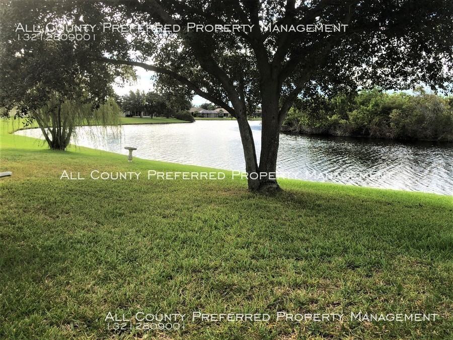 Lakefront property with a breezy screen patio to enjoy. Bright open kitchen with breakfast area and overlooking the family room. Spacious Dinning and bar combination. Three bedroom with a den or office as a fourth bedroom, 2 bathrooms, 2-car garage. Master suite with double sink, soaking tub and separate shower. Covered screened in entry. Relaxing paved outdoor seating area. NEW kitchen with stainless steel appliances! Walk inn Pantry. Ceiling fans in each room. Tile and laminated floors throughout including rooms. Community pool and Playground. Washer and dryer included. Close to schools, shopping, and restaurants. Seconds away from the new 95 interchange set to open in 2019! Lawn included. Owner will consider pet! $195.00 Administrative fee due upon application approval.