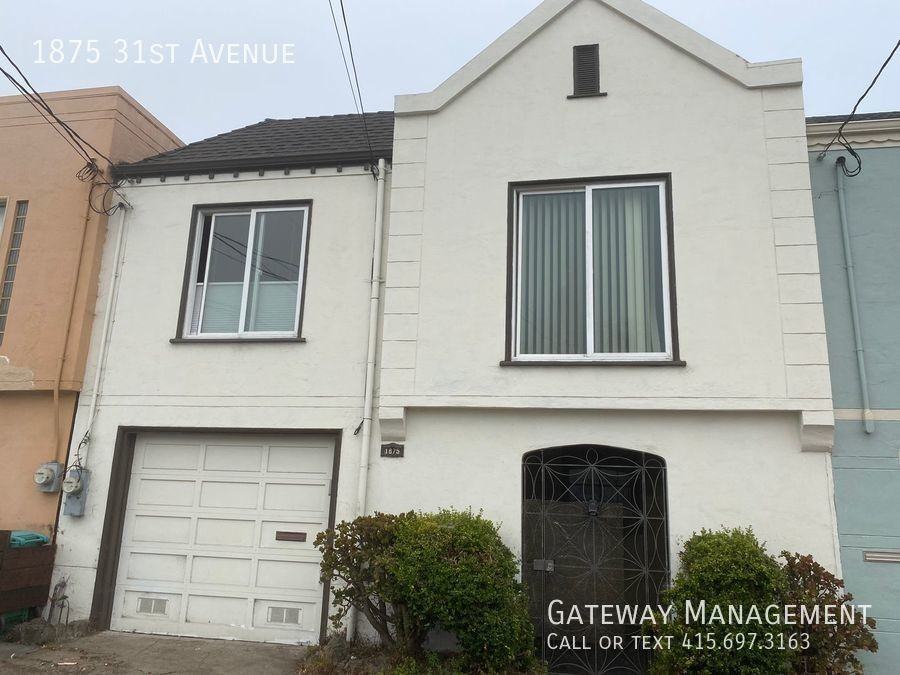 Beautiful kitchen with stainless steel appliances including dishwasher, gas stove, mahogany cabinets, recessed lighting and granite counter tops. Good sized space for in kitchen table and chairs. One of the three skylights makes this space sunny and pleasant Nice oak hardwood floors for living room and the three bedrooms plus staircase. All three bedrooms are decent size with large closets and good light. Somewhat of an ocean view from the back Two tiled bathrooms. Upstairs is full with a tub with good sun from skylight Large laundry room with washer/dryer hook-ups new floor Huge backyard with patio and some landscaping. . Yard is very large with a view and a few shrubs but not developed with small pad Newer central heat and new vinyl double pane windows. Good size garage with automatic door opener. Room for another car in front Security enhancements on front and back. NEIGHBORHOOD: Conveniently close to public transportation, freeways, schools, shopping, dining, UCSF and San Francisco State University. Noriega Street with a Streetcar and Safeway is less than a block away. Noriega has many convenient shops and restaurants. Walk or bike to the Ocean or Golden Gate Park \ TRANSIT: Catch the N- at Judah St & 31st Ave Catch the L Metro @ Taraval St & 32nd Ave The 71 Bus towards Transbay Terminal at Noriega & 31st Ave 66 Bus @ 30th Ave & Quintara St towards Judah & 9th Av. TERMS: No smoking No pets. One year lease No utilities included. For more information visit gatesf. com To see contact Chris at 415-550-7070 or catch the next open house See better photos and SCHEDULE A SHOWING http showinghotline com lc 74123960bd No, it's not a hyperlink. :-( You still have to copy-and-paste this link into the address bar on your web browser. SCHEDULE A SHOWING http schedule-a-viewing com lc 74123960bd Central Heater Close To Shopping Garage Huge Yard Laundry Room None Some Ocean View