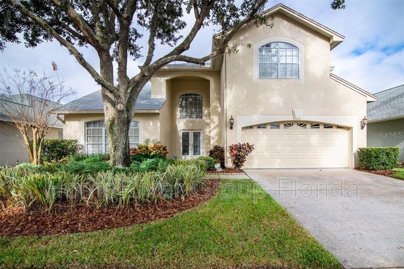 STUNNING HOME IN CHEVAL! Highly sought after Cheval Country Club Community. Overlooking the golf course this home is situated in a quiet cul-de-sac. The grand double door entry welcomes you into the two-story tiled foyer of this 4 bedroom, 3 + 2 half bath home. Host your guests from your family room complete with wet bar featuring a wine/beverage cooler. Master bedroom is on first floor, remaining bedrooms on second floor. Energy saving natural gas powers the fireplace and tankless water heater. Outdoor kitchen equipped with sink and electric grill. Large entertaining lanai leads to the beautiful solar and natural gas heated pool and spa!