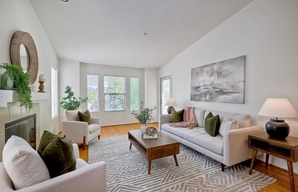 Enjoy resort-style living in beautiful home located in the desirable gated community of Bernardo Vista del Lago. Upstairs unit has expansive vaulted ceilings and tons of natural light! Gorgeous wood floors throughout the living room, dining area & spacious bedroom with walk-in closet. Access your private patio from the living room or your bedroom, and large storage closet on patio. In the hallway you'll find a full sized washer & dryer, and they convey along with the refrigerator. Interior of home was just repainted and new AC installed in 2022. Home includes an oversized private garage with extra space for storage, where many only have an assigned spot in the carport. Additionally there is ample guest parking. The amenities are stupendous with 2 pools, tennis courts, an exercise room, billiard room & clubhouse. Conveniently located just off I-15, and 1 exit from the Westfield Escondido Mall with great restaurants. Explore nearby biking & hiking trails of Lake Hodges. Utilities includes water & trash, exterior maintenance & all amenities.