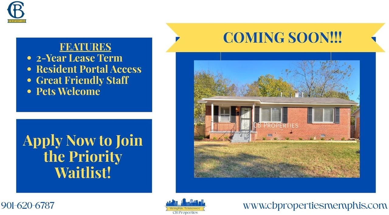 Inviting open-concept rental featuring spacious bedrooms and a bright layout perfect for everyday living. Enjoy the convenience of your own driveway, gated backyard, and a backyard storage area. If Approved, All Application Fees Will Be Refunded. All Housing Vouchers Accepted and Inspection Ready Today! Contamos con agentes hispano hablantes para asistirle. Por favor, llame a nuestra oficina. Si no podemos atenderle de inmediato, deje un mensaje de voz y le devolveremos la llamada a la brevedad. Looking for better customer service from your Property Manager? Look no further than CB Properties - a locally owned and operated company based in Memphis, TN. We take pride in our A+ rating with the BBB and 4+ star Google Rating, both of which have been earned by prioritizing the needs of our residents and providing exceptional service. Rent local and experience the difference firsthand! ***Scam Warning*** CB Properties does not advertise on or Facebook Marketplace. We will never ask you to wire money or request funds through a payment app on your mobile device. Instead, you will be asked to bring a property reservation fee to our office located at 1060 Brookfield Rd, Memphis, TN 38119. Please exercise caution and reach out to us directly if you have any concerns or questions. All CB Properties residents are enrolled in the Resident Benefits Package (RBP) for $39.95/month. This includes renters insurance, credit building to help boost your credit score with timely rent payments, $1M Identity Protection, HVAC air filter delivery (for applicable properties), move-in concierge service making utility connection and home service setup a breeze during your move-in, our best-in-class resident rewards program, and much more! More details upon application.
