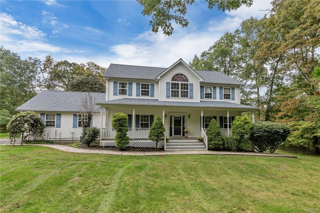 Set back on 4.3 pristine acres in an upscale neighborhood sits this classic center hall colonial offering privacy & endless possibilities. Upon entering the tiled foyer, you are invited into a living & formal dining room w/ crown molding, chair railing & newly refinished hardwood floors. Spacious eat in kitchen with plenty of cabinets, peninsula, pantry & tiled back splash. French doors to an outside trex deck w/ramp. Generous family room w/ gas fireplace adds ambiance & warmth to cool fall nights. Laundry/full bath finish this floor. 2nd floor boasts an elegant master suite-tray ceilings, walk in closet, ensuite featuring jetted tub, double sinks, walk in shower. 3 generous bedrooms, Palladium window & full bath complete this floor. New carpeting in 3 bedrooms. Walk out basement, hardwood floors on 1st floor/stairs/master bedroom, full house generator, central vac, handicap features, front porch, 2 streams & a pond are bonuses. EZ access to metro north, HWYS, Stewart airport.