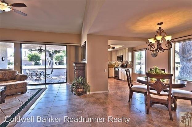 Great condo in Rancho Las Palmas - Beautiful end unit in Rancho Las Palmas Country Club, this unit has been upgraded with warmth and charm. Beautiful mountain views from the back patio. The kitchen has been upgraded with slab granite counters and stainless steel appliances. The floors have been upgraded with tile. Brand new Master Shower and glass. A large greenbelt just beyond the patio gives a spacious, open feel to the property. Pool is steps away from your patio. Light and bright with plenty of sun. 2 car garage. Fireplace included. Furnished optional. Cable included with rent. One year lease. Contact us today for a private showing. 760-228-RENT. $30 application fee. Offered by Coldwell Banker Roadrunner Realty. Lic.# 01517134