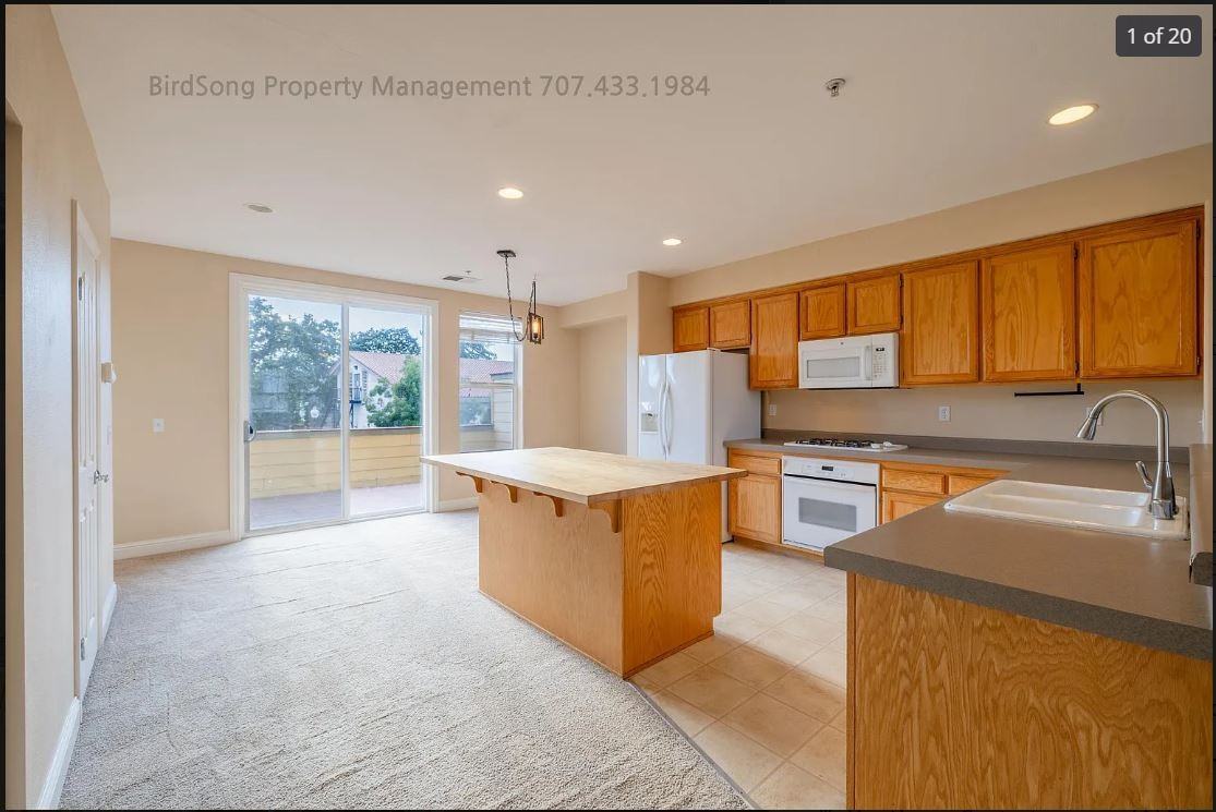 3 Bedroom Condo, with Private Entrance, near Windsor Town Green Conveniently located to the Route 101 Corridor, this residence is a great landing spot, whether you are a resident of Sonoma County or are looking for a long term vacation rental to enjoy all of the fabulous activities that Wine Country has to offer! The main living space is on the second level of the building. The Living Room has 2 large windows that face East, a gas fireplace, ceiling fan and bookshelves. There is a bar-height counter that is long enough for several stools and provides a physical barrier between the Living room and Kitchen. The Kitchen has a gas cooktop, oven, refrigerator, microwave and dishwasher. There is a large island, with a butcher-block top and designed for 3 Counter-height Stools. The Dining area is just beyond the Kitchen. A sliding door from this space leads out to the large deck. The floor above contains 3 bedrooms, 2 full bathrooms and the laundry room, complete with a washer and dryer. The Master bedroom Suite has 2 large closets, a ceiling fan, a double vanity, a separate shower and a separate room for the toilet and tub. The other two bedrooms both have large windows and nice-sized closets. The Condo has 2 reserved parking spots located just steps away from the front door, guaranteeing your parking when the busy Town Green activities begin. With easy access to Highway 101, putting you in the middle of everything, this great living space is very convenient and also a walkable distance to Oliver's Market and all of the downtown area with its great restaurants such as the well-reviewed Zin Restaurant, and Lupe's Diner and Agave Bar which provides a very good Mexican food option. Starting in summer, have fun at the Summer Nights on the Green, Windsor's live music and street fair, a place to enjoy street food, Sonoma County wines and craft beers, lawn games, and so much more. This clean and well maintained Windsor Green condo will not be available for long, give us a call or send an inquiry and we will schedule a viewing for you ASAP! Tenant pays all utilities $3200/month- 1-year lease $3500 security deposit $35 fee per applicant over the age of 18 Small, well behaved pet will be considered $500 pet deposit