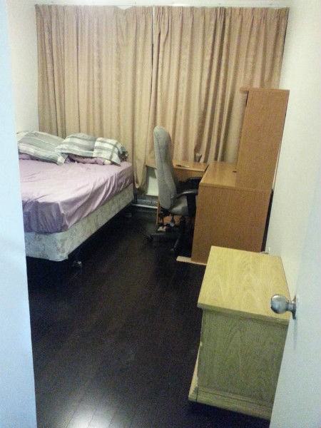 One (1) bedroom for rent on 2nd floor of 4-bedroom townhouse in a quiet, residential area near York U and Jane & Finch. Available immediately to responsible and respectful tenant. * Private (personal) 4-piece bathroom beside bedroom * New engineered hardwood floors * Room is furnished with a bed, computer desk, chest of drawers nightstand and a chair or can be cleared * Internet+Hydro included (unless abused) * Shared laundry room available on main floor (during off peak hours, please) * Pool table and basic cable included (no TV ATM, so provide own) * Shared kitchen (with dishwasher) and living room on main floor * Shared maid services for common optional upon discussion House is within a short walk from Jane & Finch Mall and Yorkgate Mall, TTC bus line 108(Downsview) and 35(Jane) OR a 30 min walk to York U. Indoor parking is available for 15$ extra during winter months, other month upon owner's vehicle parking requirements. Please note a) House currently has some pending renovations and upgrades in the next 12 months: in process of floor replacement, and wall refinishing and painting; rental bedroom floor has been completed, however bedrooms walls require minor cosmetic finishing. Upstairs hallway work is partially completed, ceiling has minor cosmetic damage from a repaired roof leak fixed by the condominium board approved contractor. (This means is at some point in the near future I may be required to move the furniture from the room to access walls for refinishing and repainting) b) Current pet is sensitive to new animals, so please no pets. c) Smoking is not permitted in or around the premises. Please inquire by email or apply online, Thank you.