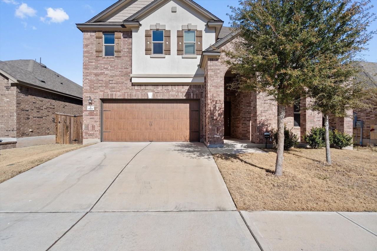 Welcome to 1901 Bogata Lane, a refined residence in the heart of Leander, where modern design meets effortless Texas living. This 2021-built, 4-bedroom, 3.5-bath home offers a thoughtfully designed open floorplan filled with natural light and upscale finishes throughout. The main level features a private owner’s suite with a spa-inspired bath, complete with a walk-in shower and expansive walk-in closet. A dedicated office or flex space provides the perfect setting for working from home, a playroom, or a creative retreat. The chef’s kitchen is both stylish and functional, showcasing granite countertops, stainless steel appliances, and generous storage—refrigerator, washer, and dryer included for added convenience. Upstairs, enjoy an oversized great room ideal for entertaining or relaxing, along with three generously sized bedrooms that offer comfort and privacy for family or guests. Step outside to a covered patio and spacious backyard, perfect for morning coffee or evening gatherings. Residents enjoy access to community amenities including a pool, playgrounds, and scenic walking trails, all set within a welcoming neighborhood atmosphere. Ideally located in the growing Leander area, this home offers easy access to shopping, dining, parks, and top-rated schools blending suburban tranquility with everyday convenience. A beautifully appointed home and an exceptional place to call your own. Tenants will be required to sign up for the Resident Perks Program at $25/mo per household.