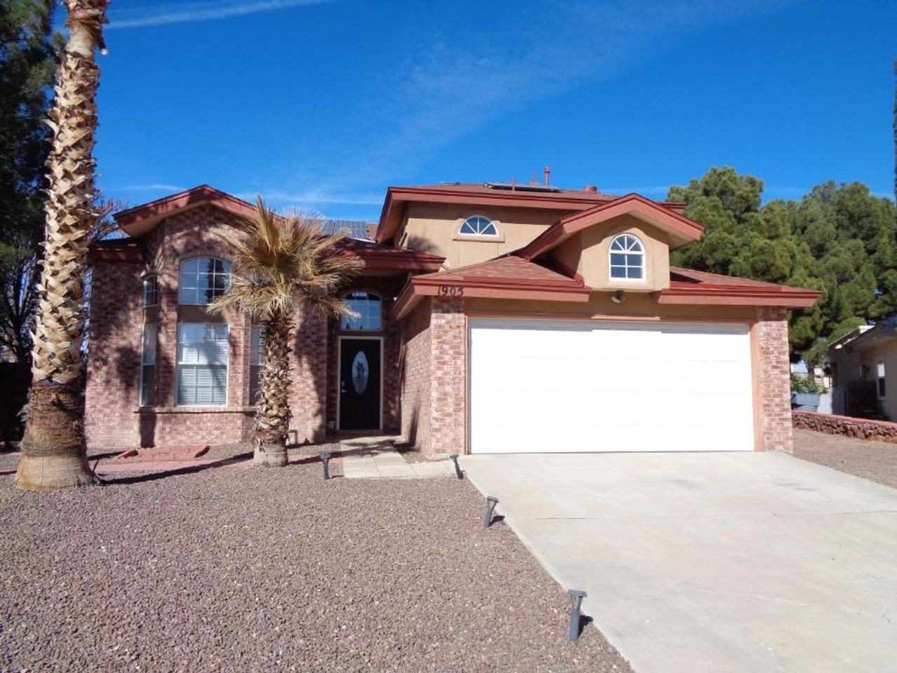 Immaculate two story Eastside home with refrigerated air & swimming pool situated on cul de sac lot in quiet neighborhood. Home features living area, den, dining area, breakfast area, loft, three bedrooms, two full bathrooms, half bathroom & two car garage. Among the many amenities included are ceiling fans, fireplace, pantry, full black stainless steel kitchen appliance package, master bedroom walk in closet, master bathroom double vanity, master bathroom garden tub, master bathroom separate shower, laundry room, garage door opener, garage door opener remotes, solar panels, balcony, back covered patio & much more. Front & back yards are professionally landscaped. Home is located close to parks, schools, shopping, freeway access & Fort Bliss. Come view this home today as it is ready for immediate move in!