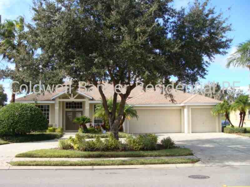 Executive home awaits your arrival. Four bedrooms, 2 bath, 3 car garage home with gorgeous pool and spa overlooking serene, private views of the large pond. Fireplace in living/great room. Circular driveway surrounded with nice landscaping. All appliances including washer, dryer, and water softener. Large, brick pavered lanai. Walk to playgrounds. Excellent schools.