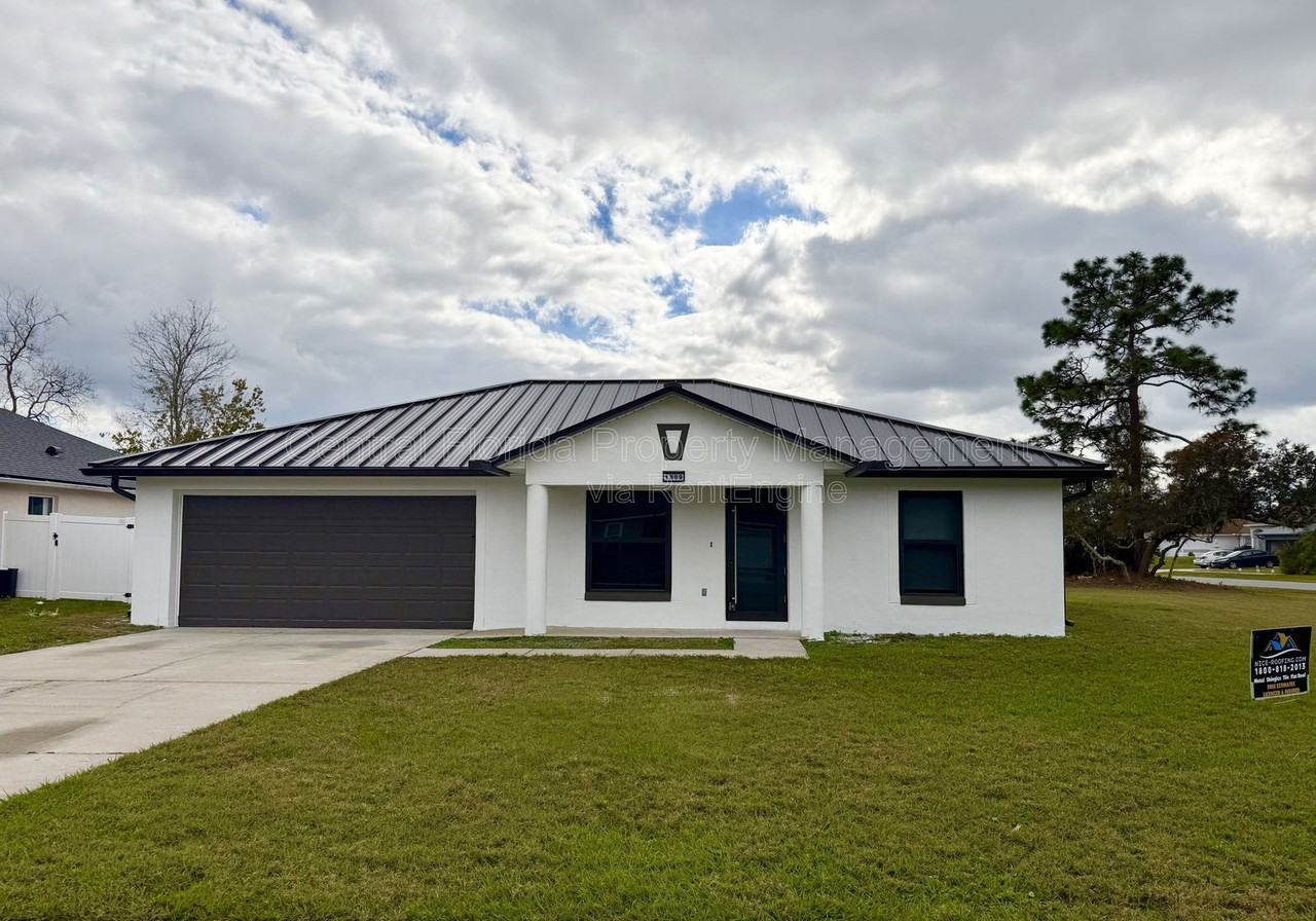 Welcome home! This fully renovated 3-bedroom, 2-bath home is available for immediate move-in! All new inside with marble-looking, large-profile porcelain flooring, new exterior paint, new tin roof, freshly painted, new kitchen and bathroom cabinets, Led lighted bath mirrors, plus a vast, partially fenced corner lot and a two-car garage. All new windows and doors, including the garage door. Conveniently located in the community of Deltona Lakes, this property features an open, comfortable split floor plan with well-proportioned bedrooms and bathrooms, a lovely new kitchen with ample counter and cabinet space, and many desirable features. Act now! This one won't last long! All applicants are required to do a credit and background check. Renters' insurance is required. By submitting your information on this page you consent to being contacted by the Property Manager and RentEngine via SMS, phone, or email.