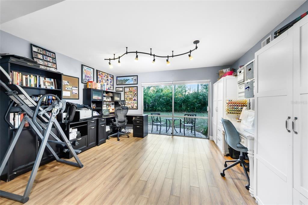Beautiful and bright, upgraded and very well maintained 5 bed/3 bath PLUS an office in the sought after Forest Ridge community just 1.5 miles from UF! The house is a tri-level property on a corner lot that has brand new paint on the exterior just a few months ago. Features below: Interior - Bright, large living room with canned lighting that was recently painted - Granite counters in kitchen with updated canned lighting and lots of light- New and really nice fridge - Dining room has been updated with designer wood shelving and extra cabinets along the wall. Features below: Interior - Bright, large living room with canned lighting that was recently painted - Granite counters in kitchen with updated canned lighting and lots of light- New and really nice fridge - Dining room has been updated with designer wood shelving and extra cabinets along the wall - Office/play room has large sliding glass doors with lots of light. - Office/play room has large sliding glass doors with lots of light - Master bedroom has multiple large windows for light and has 2 closets plus large master bathroom closet. - Master bedroom has multiple large windows for light and has 2 closets plus large master bathroom closet - The other 2 bedrooms along with the upstairs are large and have plenty of space. - The other 2 bedrooms along with the upstairs are large and have plenty of space - Downstairs 2 bedrooms share 1 fully updated bathroom. 1 of those bedrooms is large and has multiple windows. - Downstairs 2 bedrooms share 1 fully updated bathroom. 1 of those bedrooms is large and has multiple windows - Stainless appliances with new oversized fridge. - Stainless appliances with new oversized fridge - Double pane windows - Updated full laundry room with lots of storage cabinets and shelving, plus a 2nd fridge. - Double pane windows - Updated full laundry room with lots of storage cabinets and shelving, plus a 2nd fridge - Lots of storage spaces with large AC storage room. - Lots of storage spaces with large AC storage room - Wired for choice of FiberIQ and Cox Cable Internet. Exterior- Fully fenced back yard - Security cameras in front and side - Professionally landscaped in front of house - Large private back yard with pavers and fruit trees. Exterior- Fully fenced back yard - Security cameras in front and side - Professionally landscaped in front of house - Large private back yard with pavers and fruit trees - 2 Large sheds outside