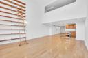 Experience comfort and modern luxury in this beautifully designed 1-bedroom duplex loft with a dedicated home office. Enter through a welcoming foyer into a spacious living and dining area highlighted by soaring 16-foot ceilings and an impressive wall of windows that flood the home with natural light, creating a bright, open, and airy atmosphere. A sleek staircase leads to the upper-level loft, featuring a king-size bedroom and a generously sized home office, thoughtfully designed to maximize space, privacy, and comfort. The open-concept kitchen is outfitted with Caesarstone quartz countertops, a dishwasher, and contemporary finishes ideal for both everyday living and entertaining. The bathroom is finished in a warm, elegant palette with tiled floors and walls and includes high-end fixtures, a mirror vanity, linen closet, and soaking tub. Additional highlights include brand-new hardwood floors, central HVAC heating and air conditioning, and exceptional storage throughoutfeaturing a custom built-in storage unit, walk-in closet, and multiple additional closets. A truly impressive loft residence offering style, functionality, and comfort.