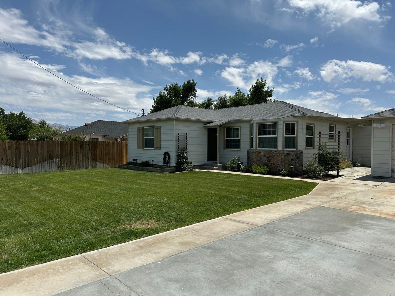 This charming home is located in Lone Pine near Mount WhitneyI Two spacious bedrooms and two full baths, large second living room, shoe organizer at driveway entry for convenience with modern updates throughout. Fenced and landscaped front and back yards with automatic sprinklers, flower beds, raised garden beds, fruit trees, patio with cover as well as a patio with a pergola. Great light throughout this home! Includes refrigerator, dishwasher, electric oven/range, microwave, washer, dryer, dining table, shoe organizer at side entry, and window coverings. Mini-splits in bedrooms and living room with ceiling fans plus an evaporative cooler and pellet stove. Make for an efficient and comfortable living space year round! The large second living room opens to the back yard and its inviting patios. Back gate provides easy access to trails! Water, sewer, trash, and landscaping included! Year lease preferred, one dog negotiable with additional funds and renters insurance that covers the dog. Credit and income verification required.