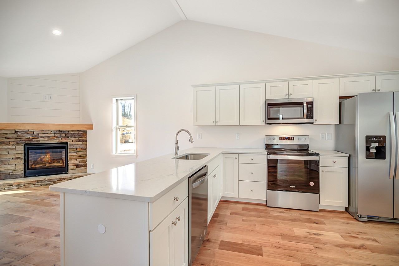 Experience serene mountain living at the Townhomes at Brookshire, ideally located just one mile from Highway 421 in Boone. This charming home offers 1,024 square feet of thoughtfully designed living space, featuring two spacious bedrooms, each with its own ensuite bathroom and generous closet. The open-concept main living area boasts vaulted ceilings, creating a bright and airy feel, while the large kitchen is perfect for both cooking and entertaining. Adjacent to the kitchen is a convenient laundry room equipped with a washer and dryer. We prioritize a safe, family-friendly environment - please keep gatherings respectable of our community's tranquility. Throughout the home, you'll find luxurious vinyl plank or manufactured hardwood floors, complementing either beautifully stained or painted cabinets. Each townhome also includes a private back deck and a covered front porch with stunning timber frame accents, providing the perfect spots to enjoy the tranquil mountain surroundings. ***VISIT BROOKSHIRETOWNHOMES. COM OR EMAIL **** TO INQUIRE OR BEGIN THE APPLICATION PROCESS.***
